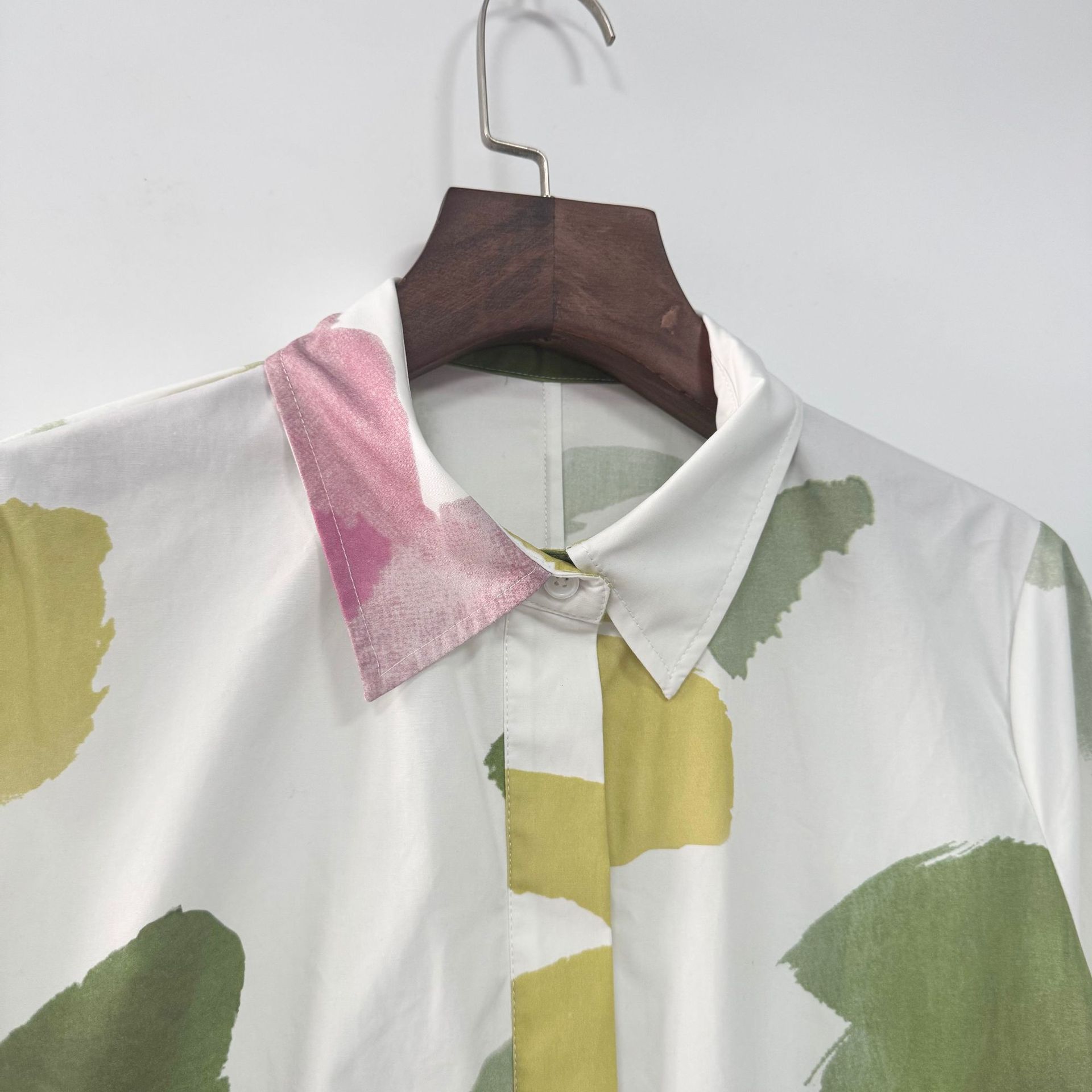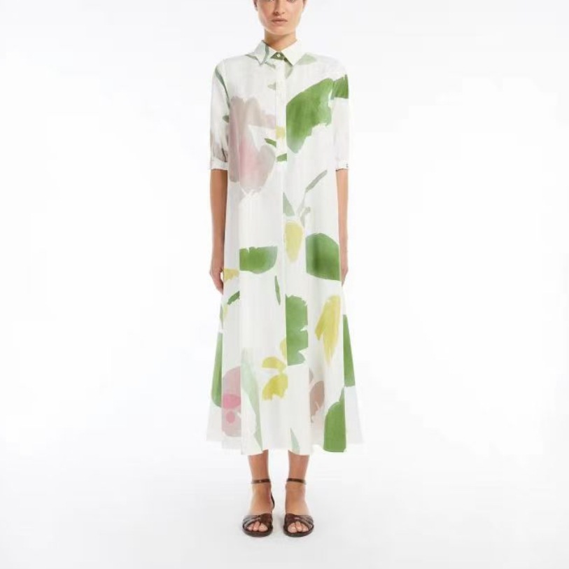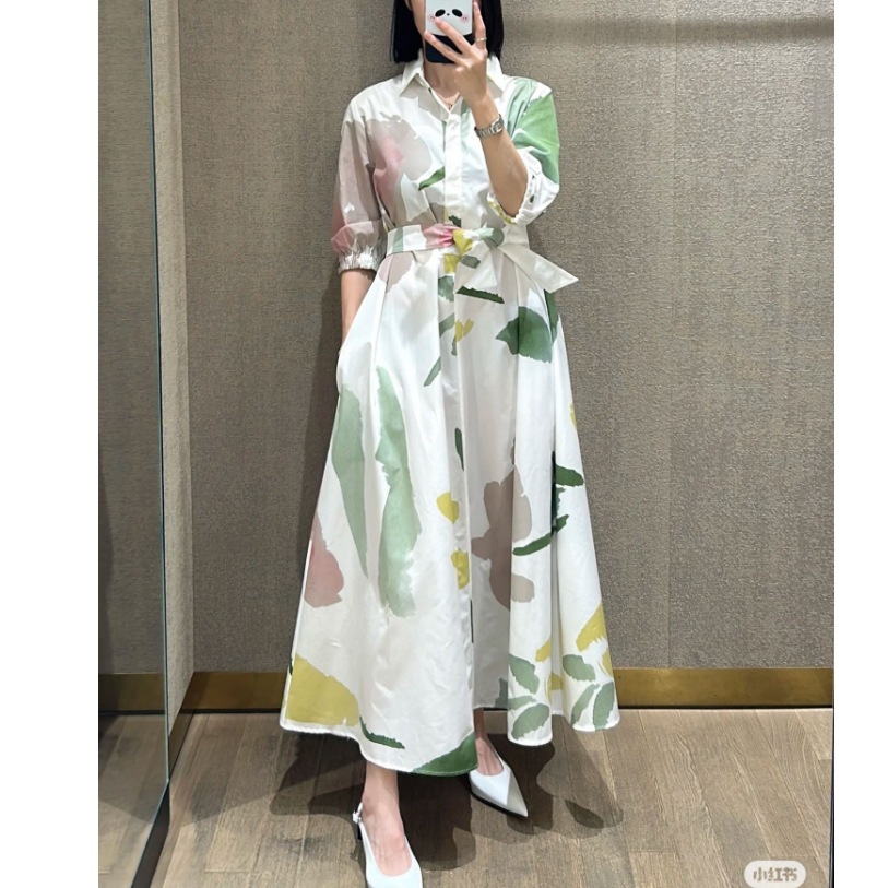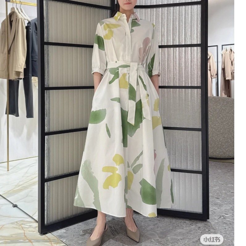 MAX25 봄과 여름 새로운 신선하고 우아한 나이 감소 코튼 포플린 인쇄 셔츠 원피스