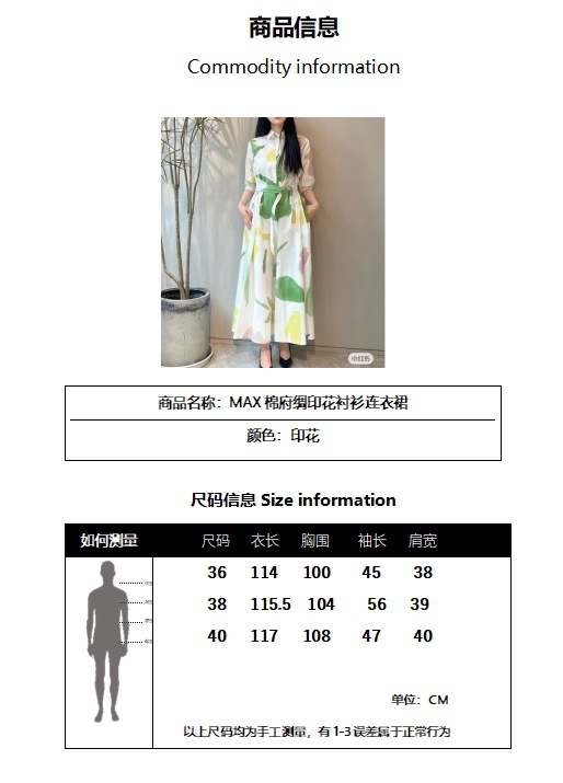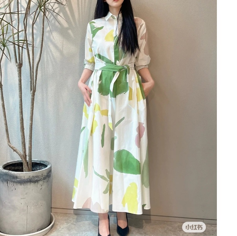 MAX25 봄과 여름 새로운 신선하고 우아한 나이 감소 코튼 포플린 인쇄 셔츠 원피스스토어 가기