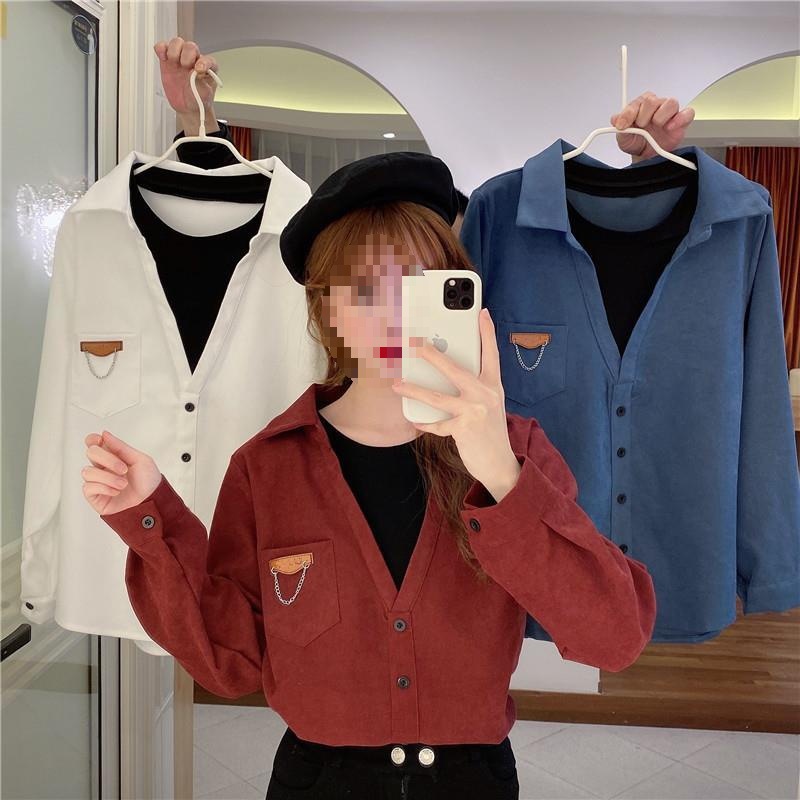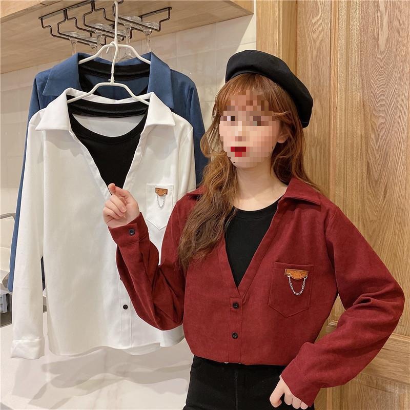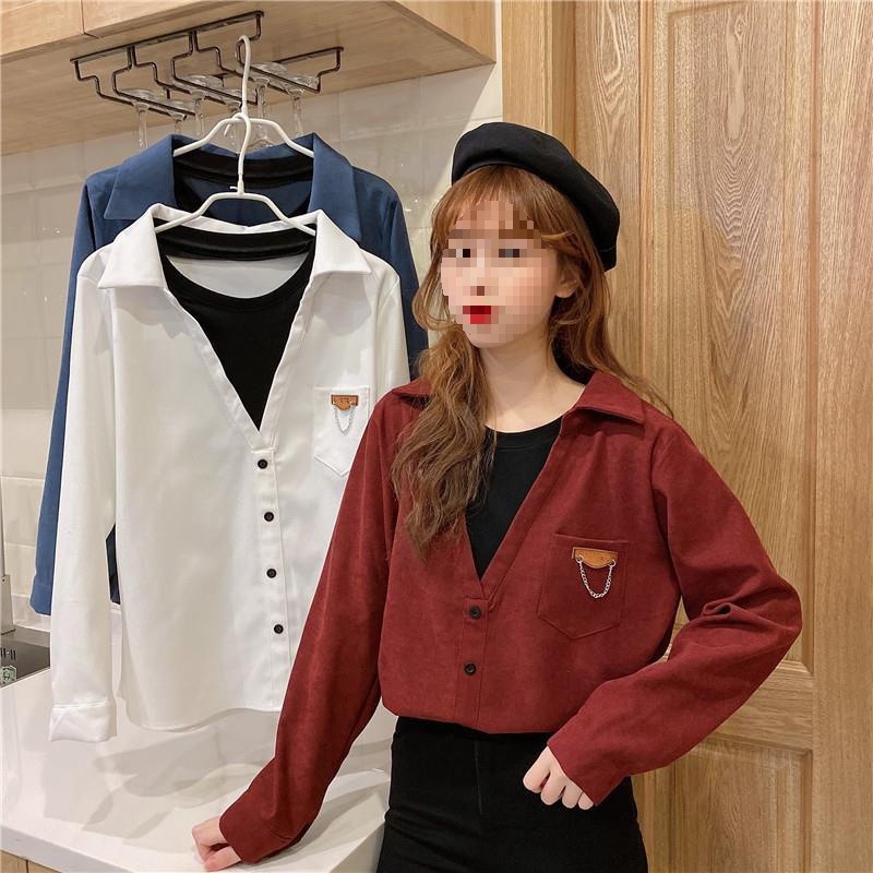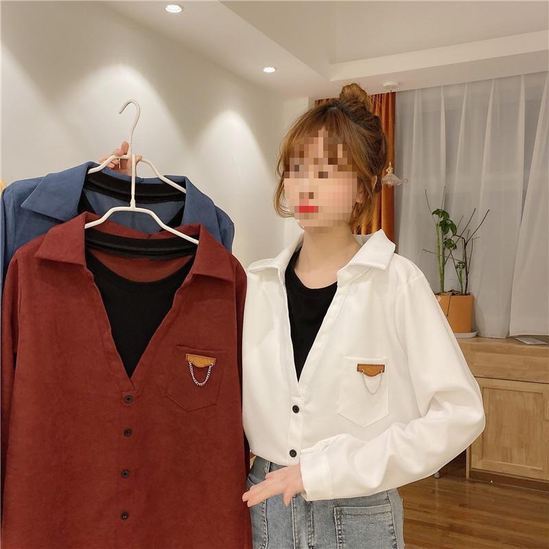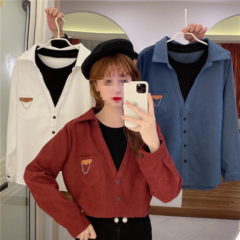 가짜 투피스 여성용 최고 긴팔 셔츠 봄과 가을 새로운 패션 디자인 센스 니쉬 프랑스 셔츠 트렌디스토어 가기