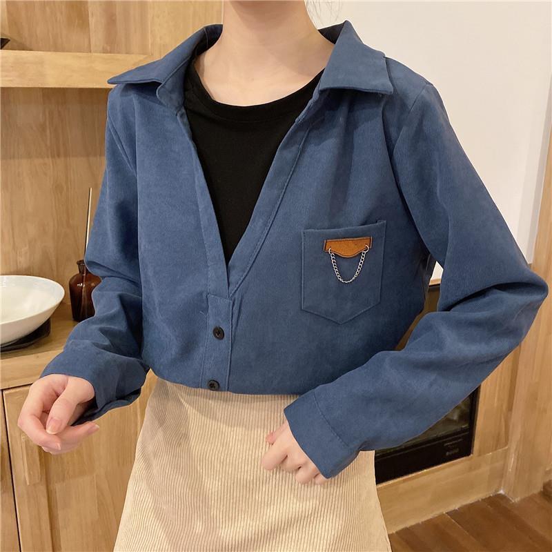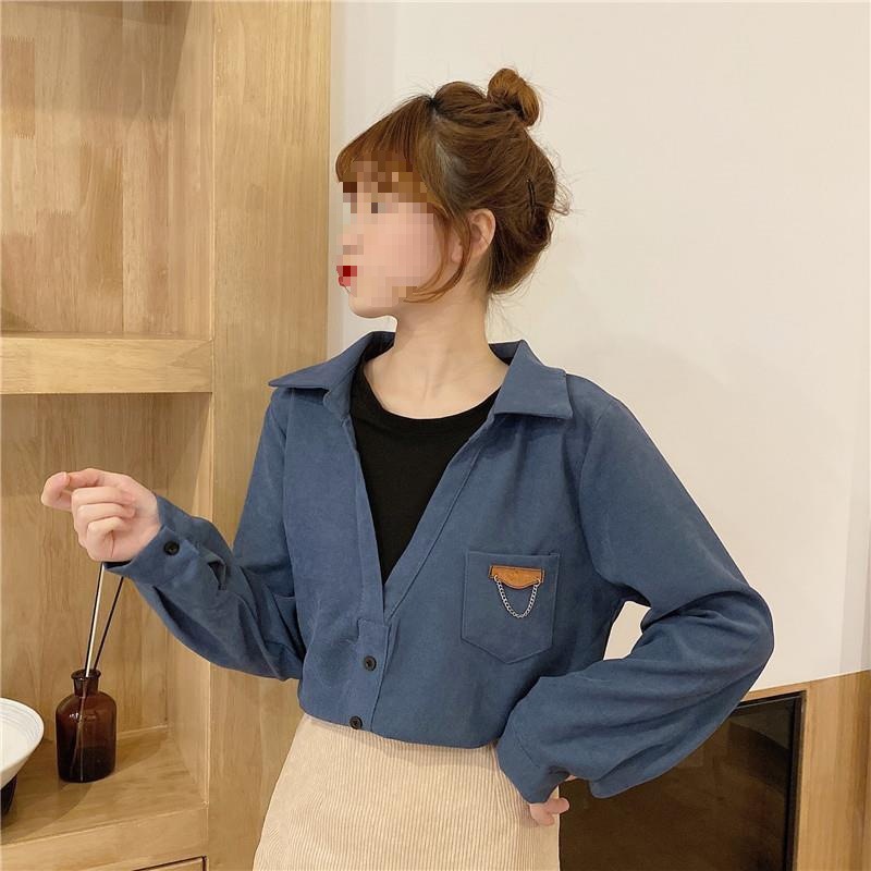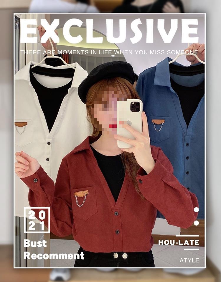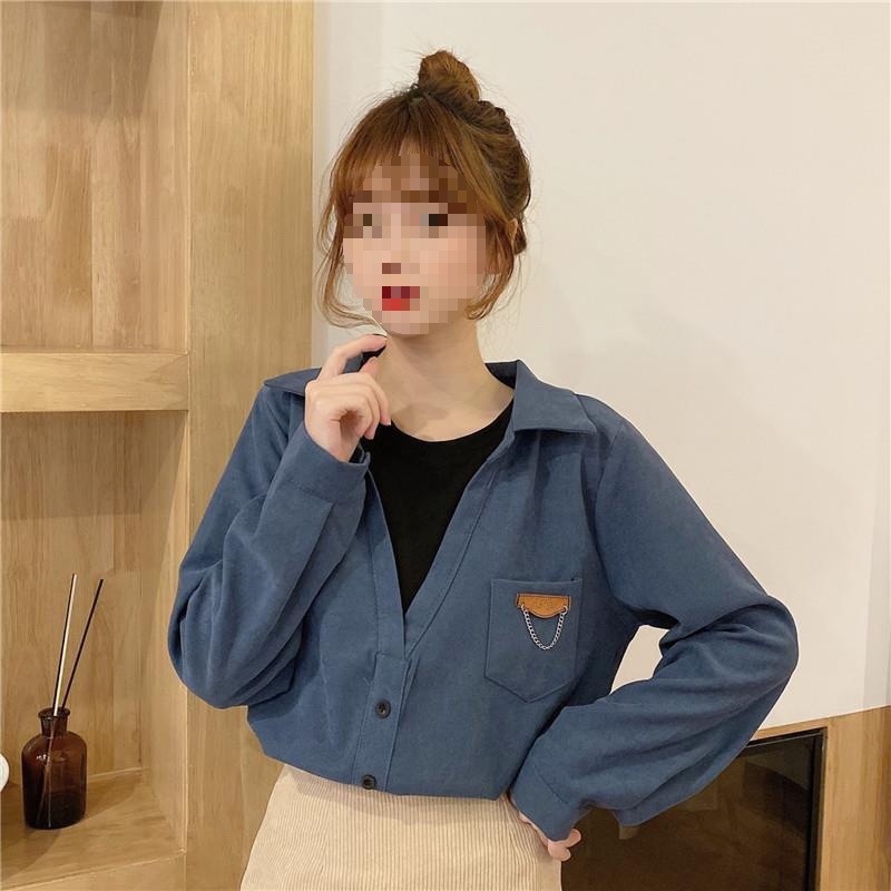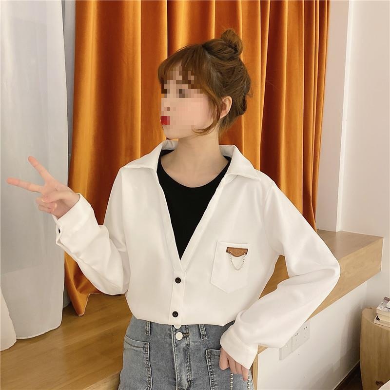 가짜 투피스 여성용 최고 긴팔 셔츠 봄과 가을 새로운 패션 디자인 센스 니쉬 프랑스 셔츠 트렌디스토어 가기