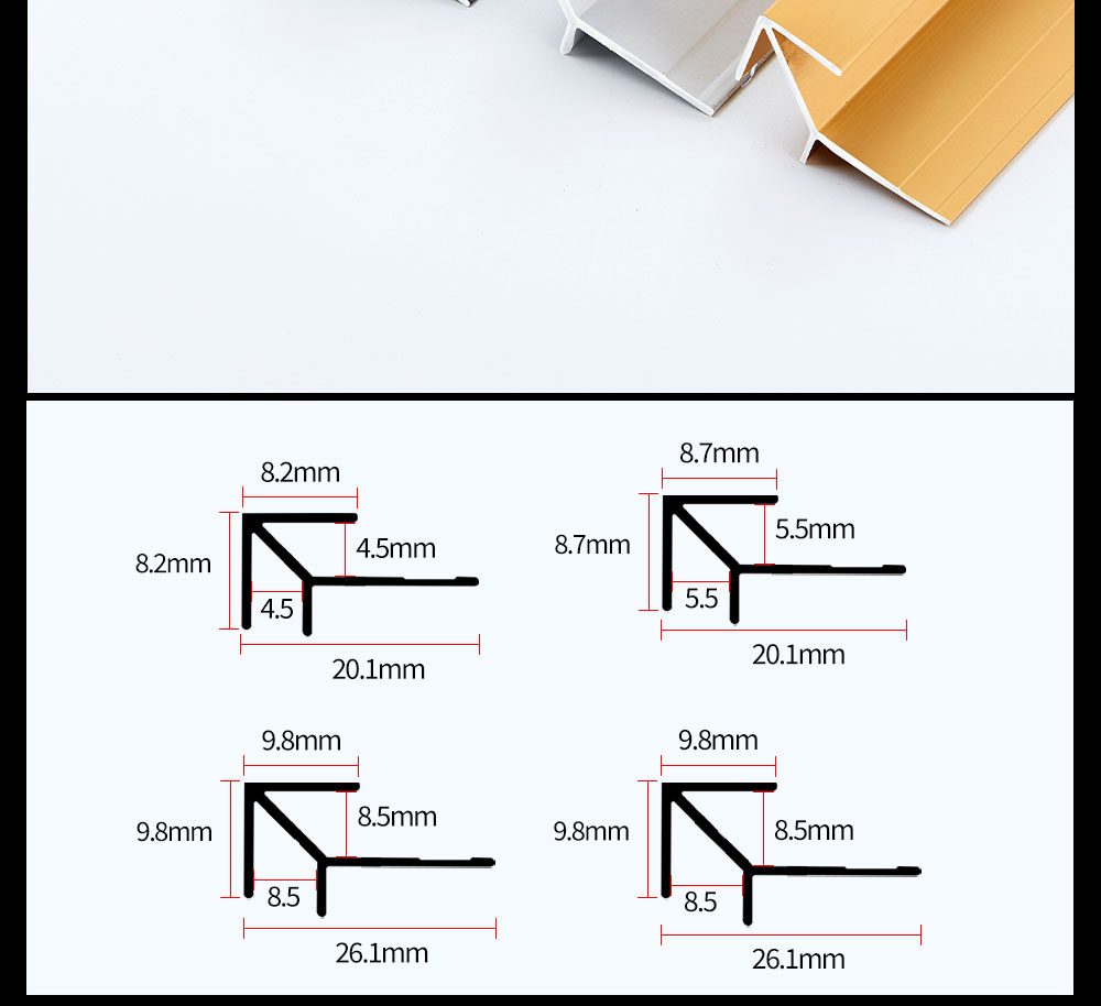 알루미늄 합금 벽 패널 아크 코너 닫는 스트립 배경 벽 카드 스트립 나무 베니어 가장자리 닫는 스트립 세라믹 타일