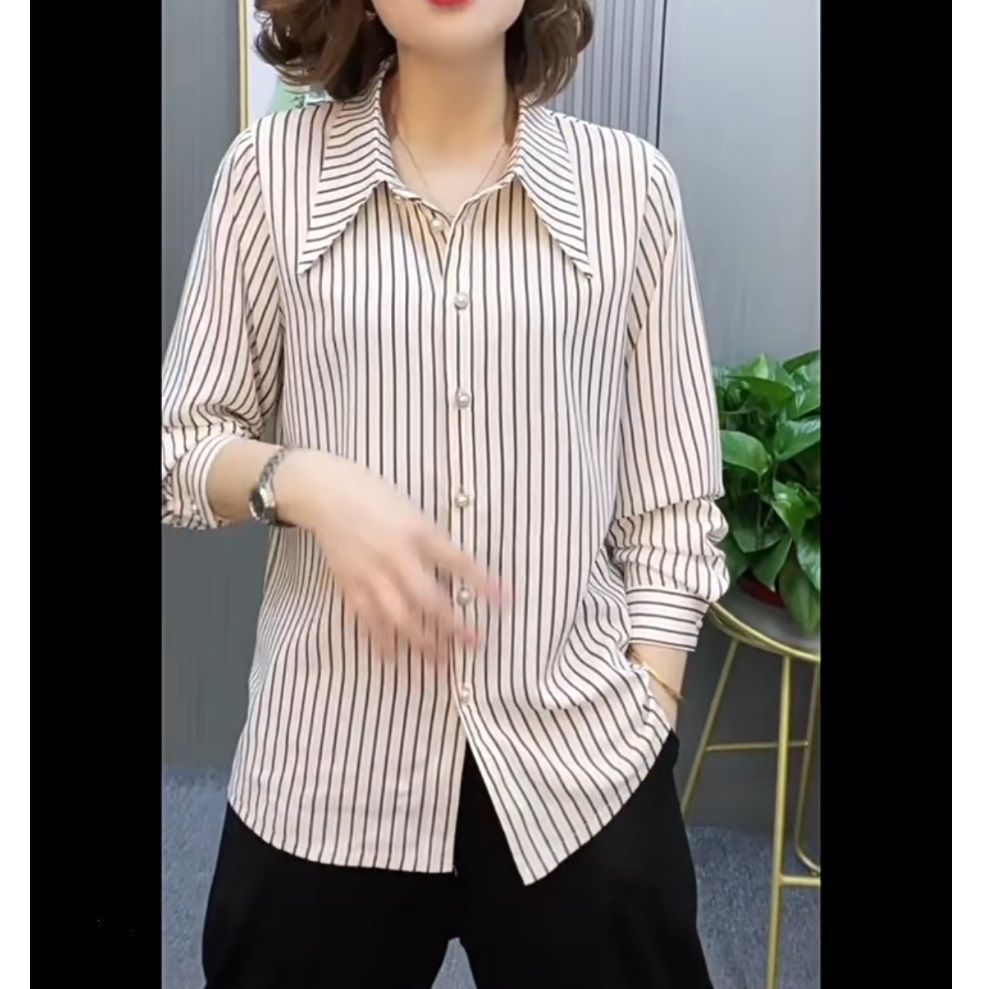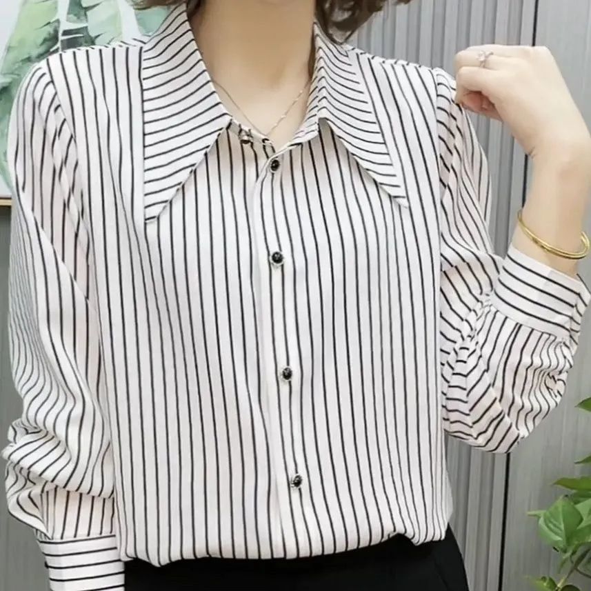새로운 패션 줄무늬 여성 긴팔 셔츠 올매치 슬림핏 봄 · 여름 셔츠 한국식 긴팔 셔츠 여성복