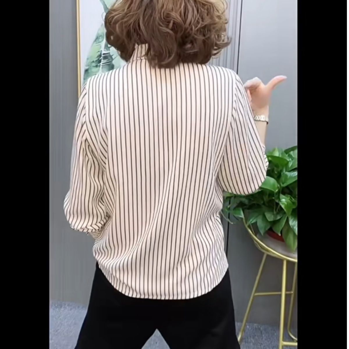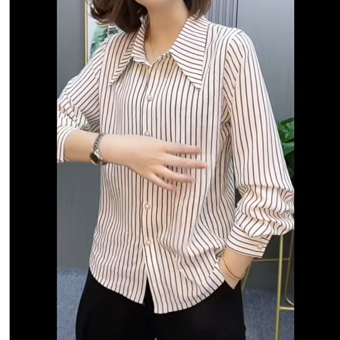새로운 패션 줄무늬 여성 긴팔 셔츠 올매치 슬림핏 봄 · 여름 셔츠 한국식 긴팔 셔츠 여성복스토어 가기