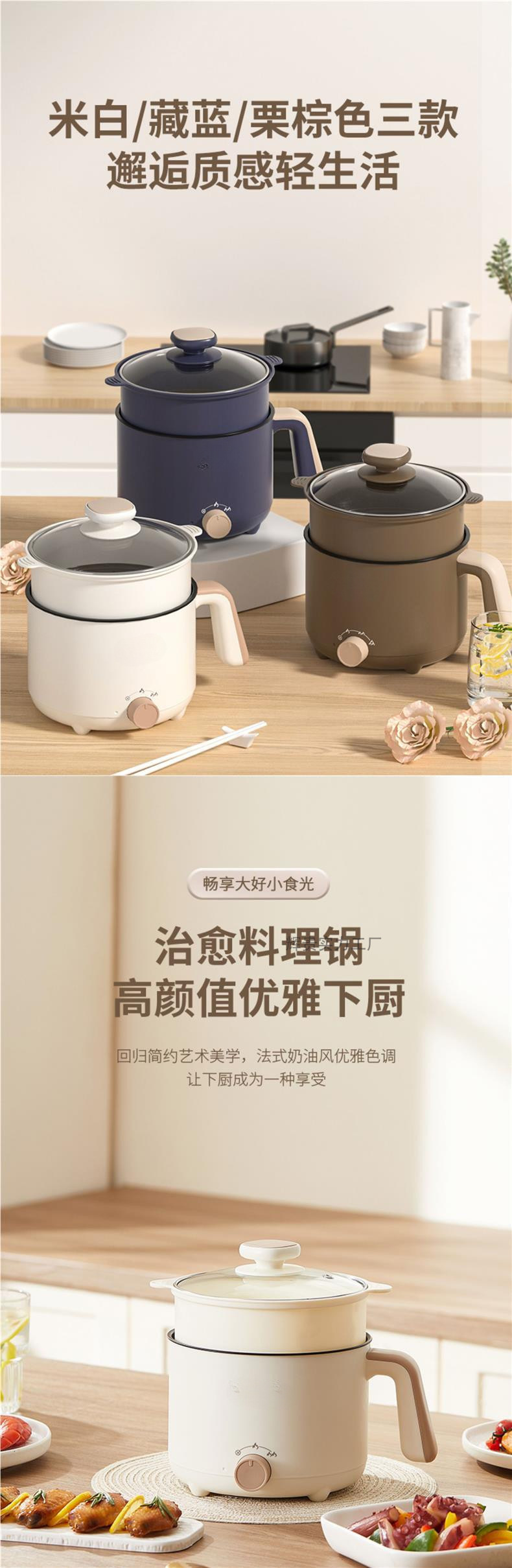 • 네이비블루 1.8L + 스테인리스 찜기 + 2m 와이어 [업그레이드된 방수커버]