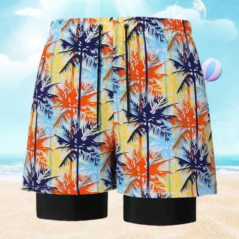 성인 더블 레이어 남성 복서 5 점 수영 트렁크 안티 당혹감 새로운 전문 해변 성인 수영 장비