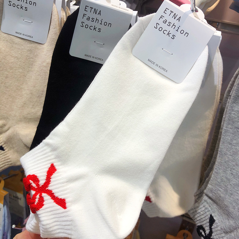 한국 수입 양말 ETNA 봄과 여름 새로운 활 달콤한 소녀 짧은 면 양말 일본 스타일 낮은 허리 소녀 양말