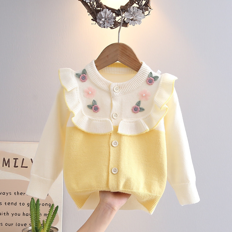 2025 새로운 스타일 한국 스타일 소녀 스웨터 카디건 봄, 가을 인형 라운드 넥 스웨터 봄, 가을 코트 탑스토어 가기