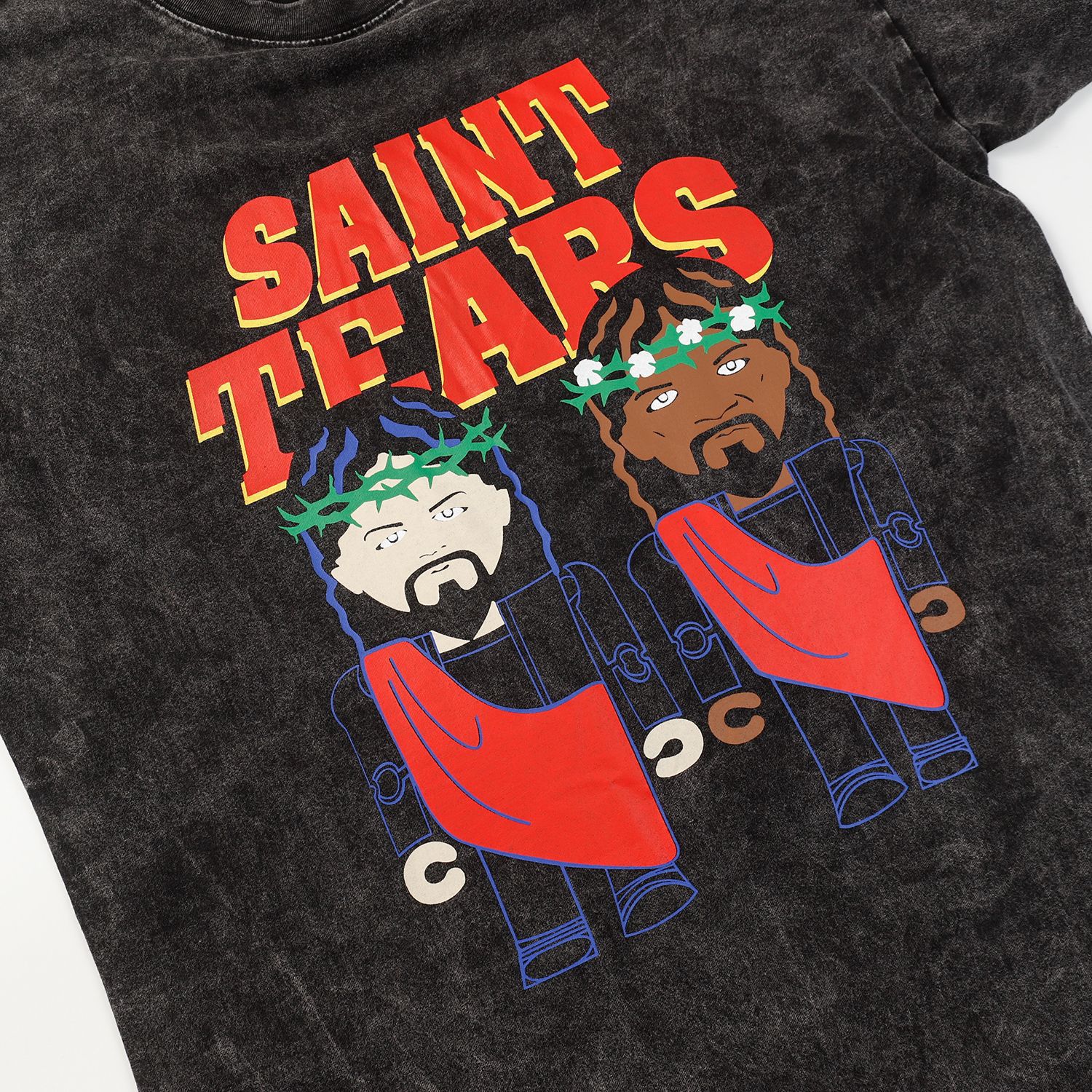 2024 미국 트렌디 브랜드 만화 문자 인쇄 캐주얼 남성과 여성 반팔 느슨한 커플 하이 스트리트 라운드 넥 티셔츠 대외 무역스토어 가기