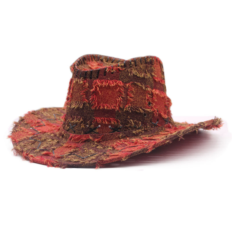 미국 복고풍 서부 카우보이 모자 격자 무늬 기사 모자 남녀 야외 여행 큰 구이 등산 모자