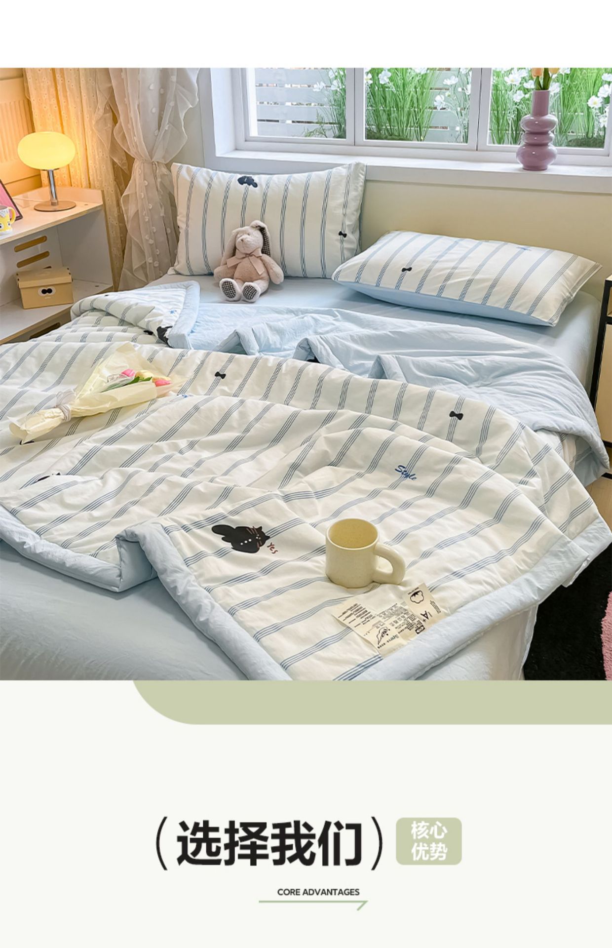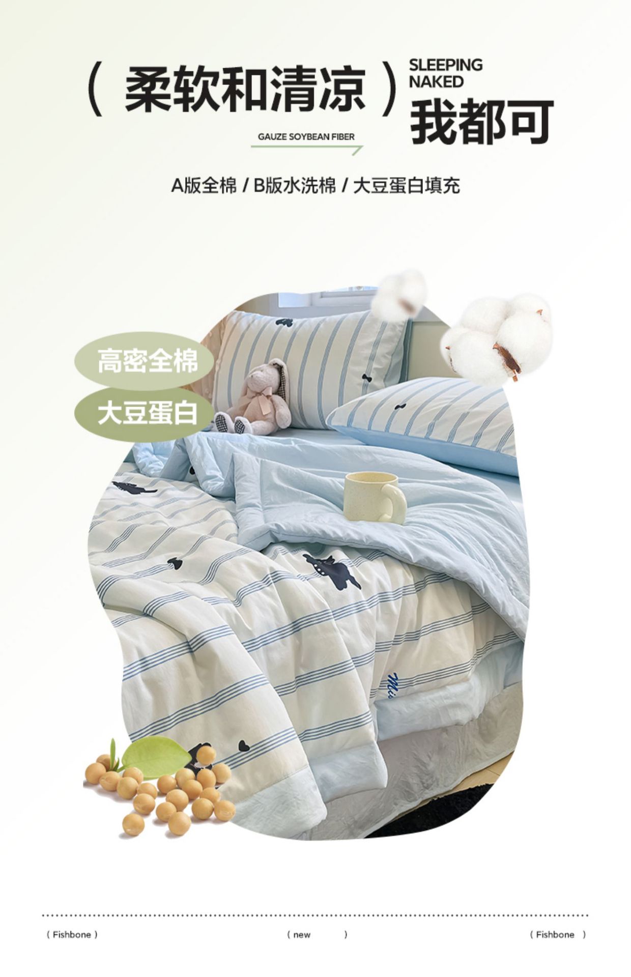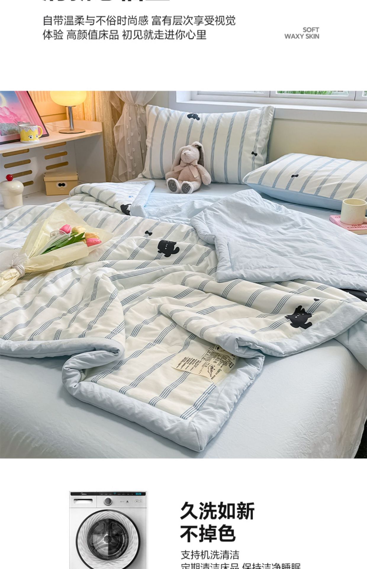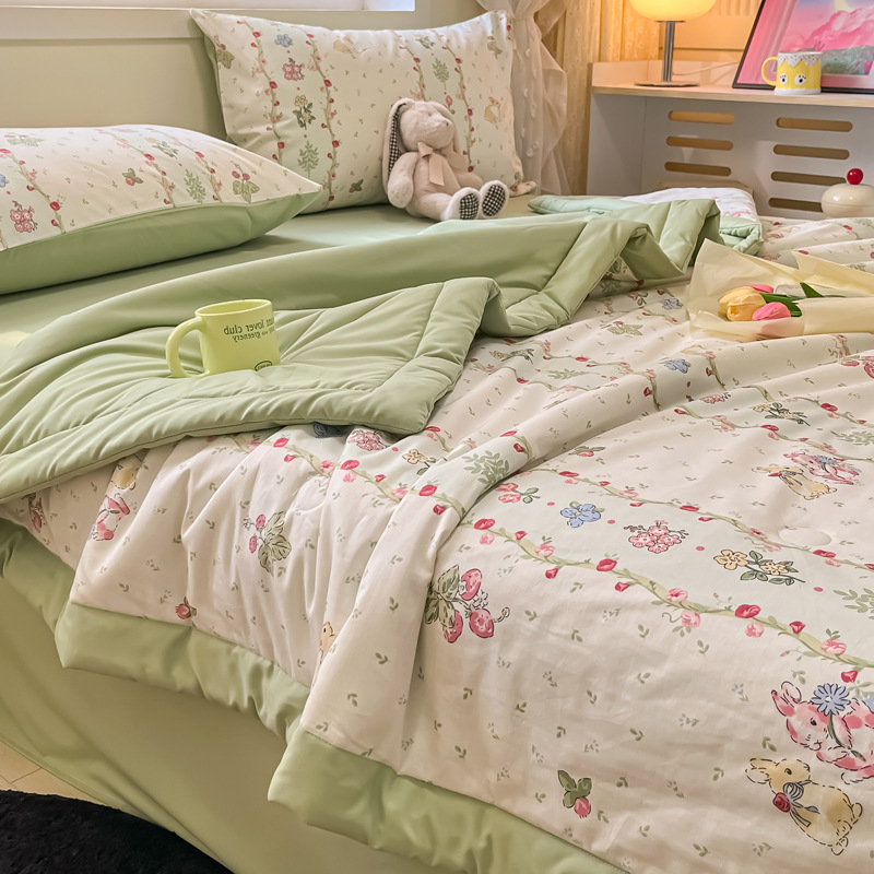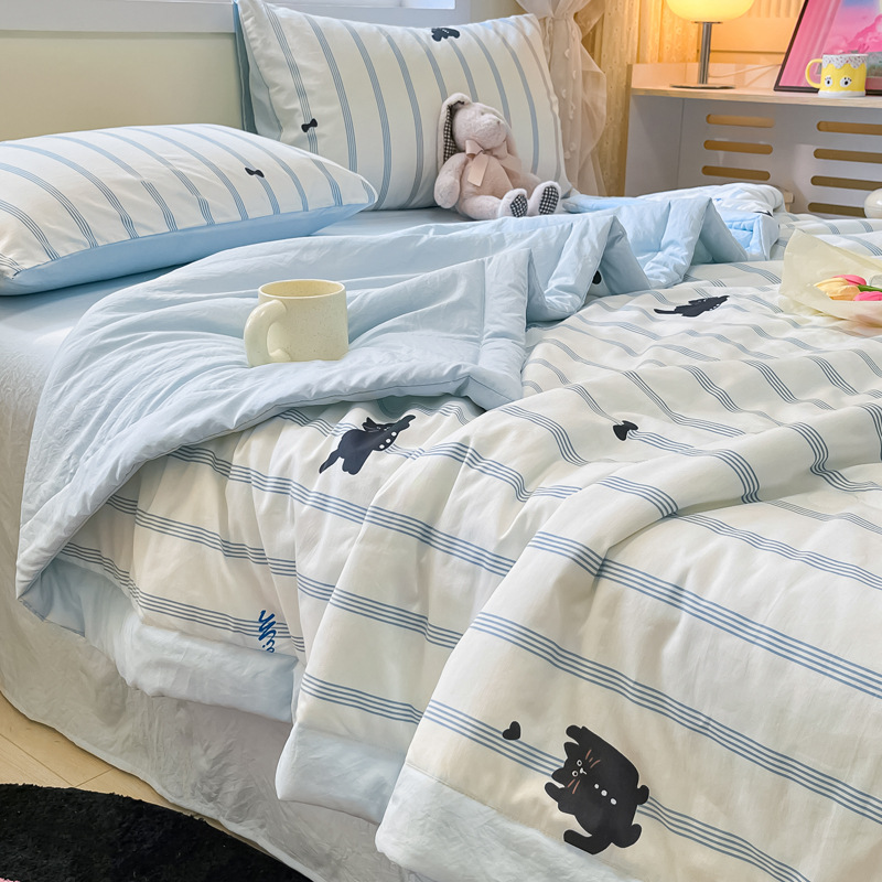 면 콩 섬유 여름 시원한 이불 기계 세탁기 어린이 여름 이불 여름 만화 고양이 순수한 면 에어컨 이불스토어 가기