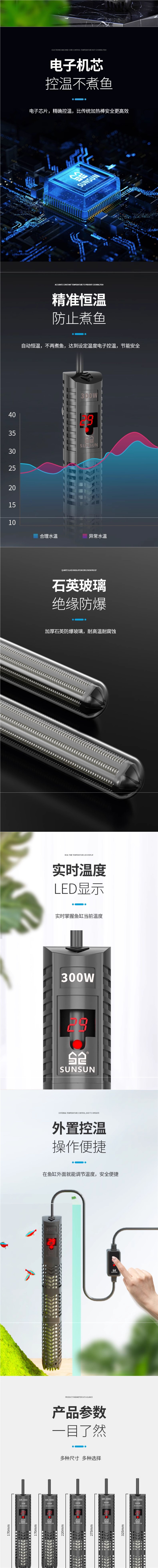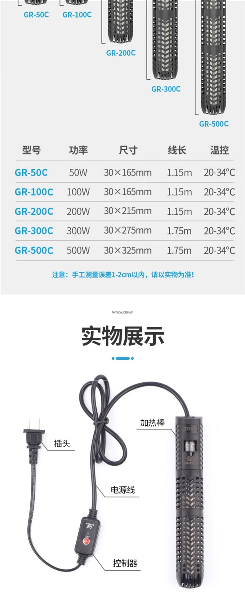 • [물과 전원 차단, 듀얼 쿼츠 디지털 디스플레이, 더욱 안정적] 200W 가열봉(50-60cm 수조에 적합)·