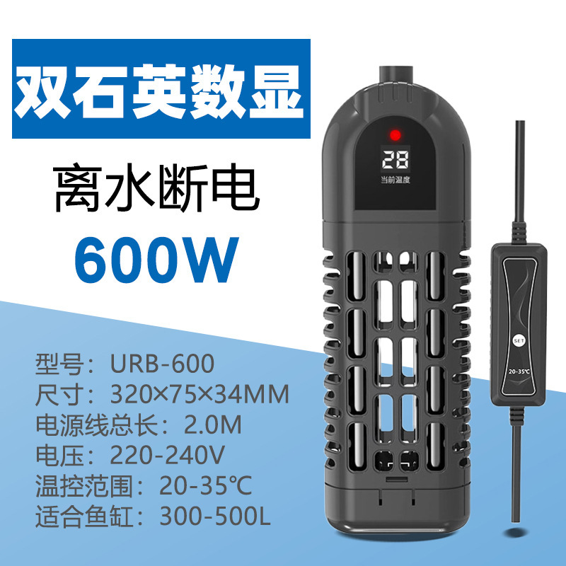 • [물과 전원 차단, 듀얼 쿼츠 디지털 디스플레이, 더욱 안정적] 600W 가열봉(100-150cm 수조에 적합)·
