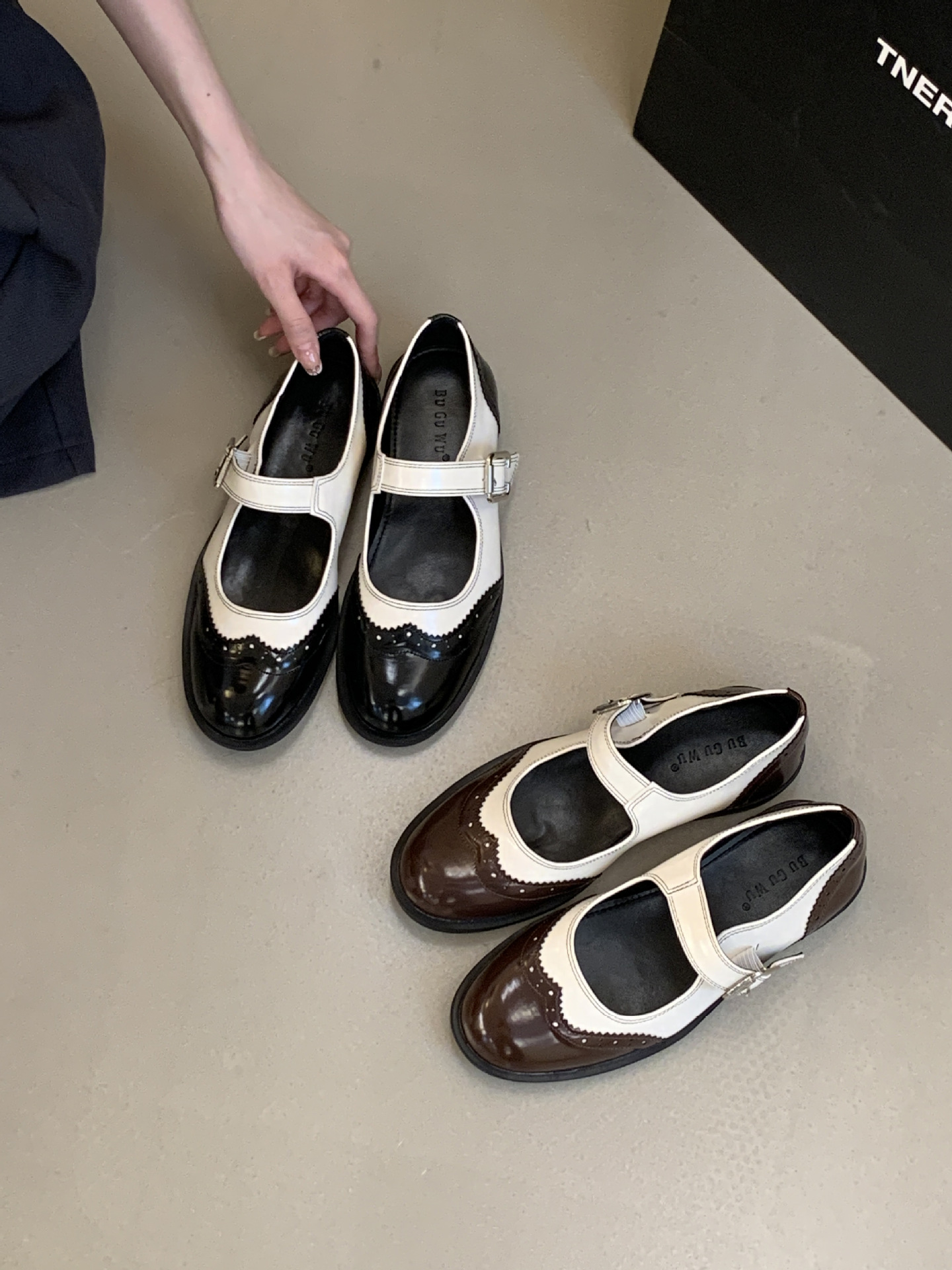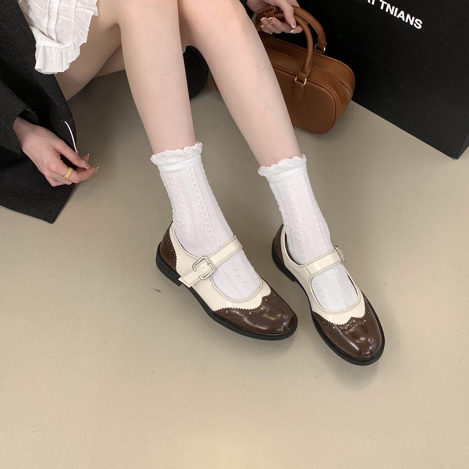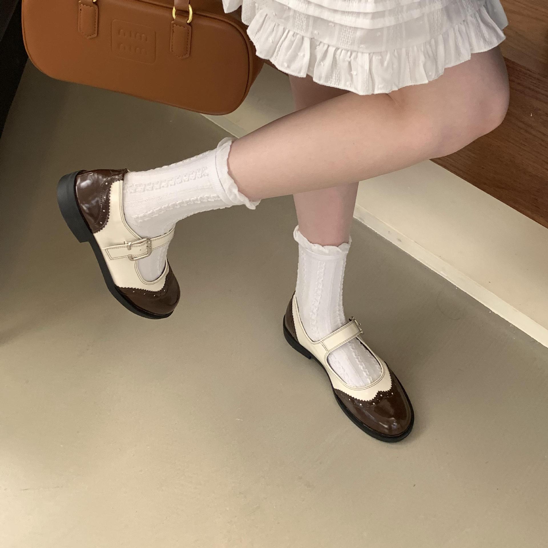 늦은 저녁 브리즈 청키 힐 레트로 닉 메리 제인 로퍼 여성 2025 년 봄과 여름 새로운 모리 디자인 작은 가죽 신발스토어 가기