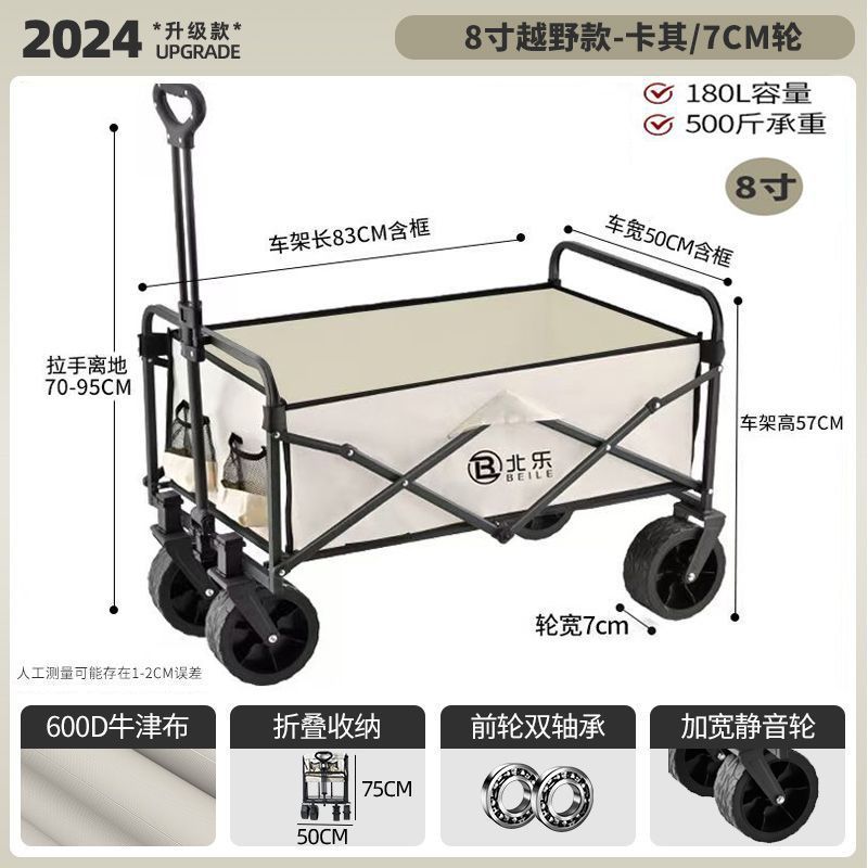 • 여행용 휴대용 자동차/고강도/고내하중/우수한 가성비 - 8inch 오프로드 모델 - 카키/7cm 휠
