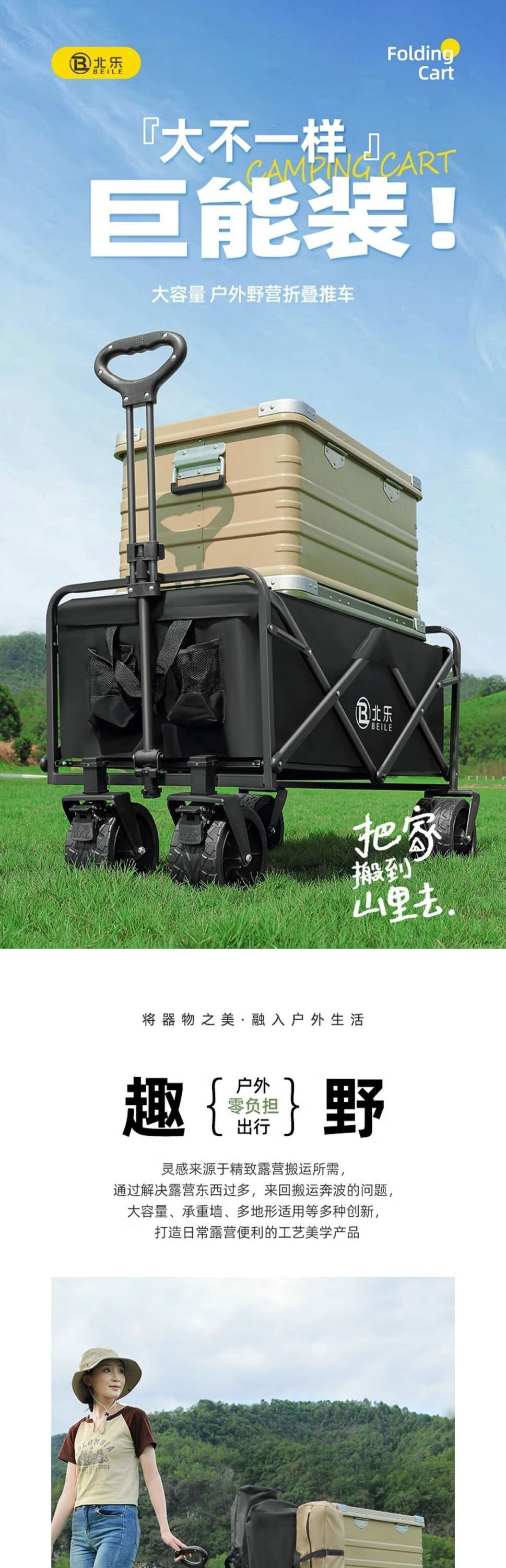 캠핑 카트 접이식 야외 캠프 자동차 손 푸시 피크닉 자동차 여행 휴대용 자동차 트레일러 트롤리 자동차 비치 카