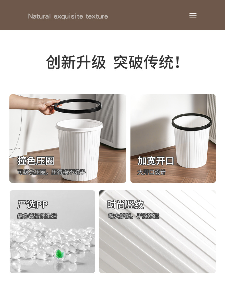창조적 인 간단한 휴지통 가구 덮지 않은 압력 반지 쓰레기통 큰 부엌 욕실 거실 줄무늬 쓰레기통
