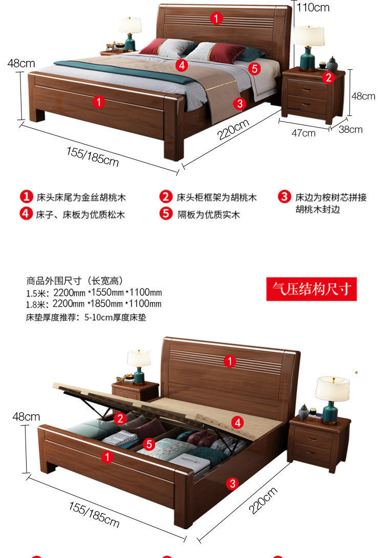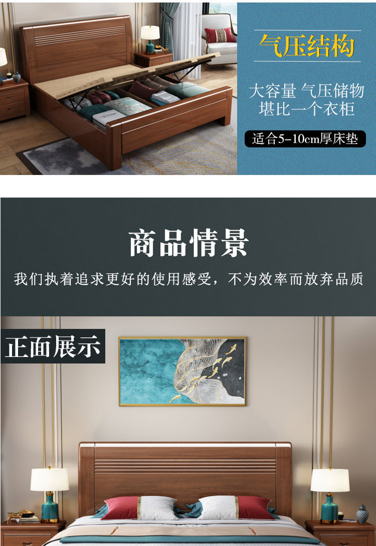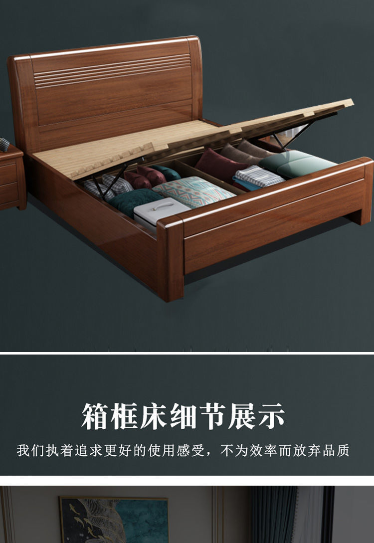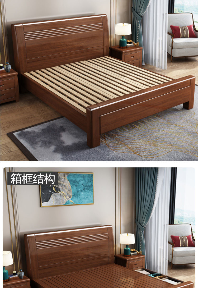 슈퍼 두꺼운 호두 중국 단단한 나무 침대 1.8 m 1.5m 침대 간단한 현대 높은 상자 수납 더블 침대 침실 침대스토어 가기