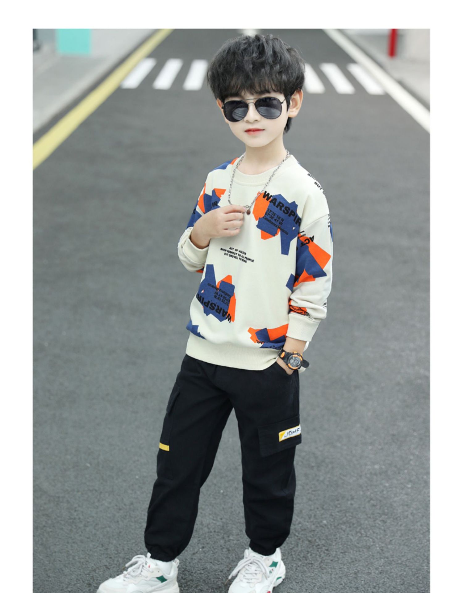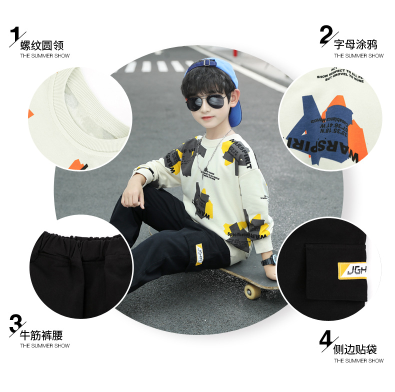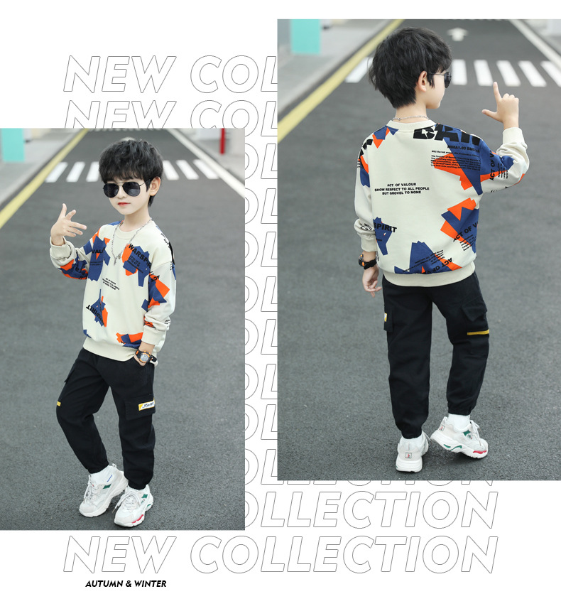 남아용 봄 스웨트셔츠 세트 2026년 신상 봄 중대형 아동용 남아 스포츠 의류 봄 가을 스타일 멋지고 트렌디한 디자인스토어 가기