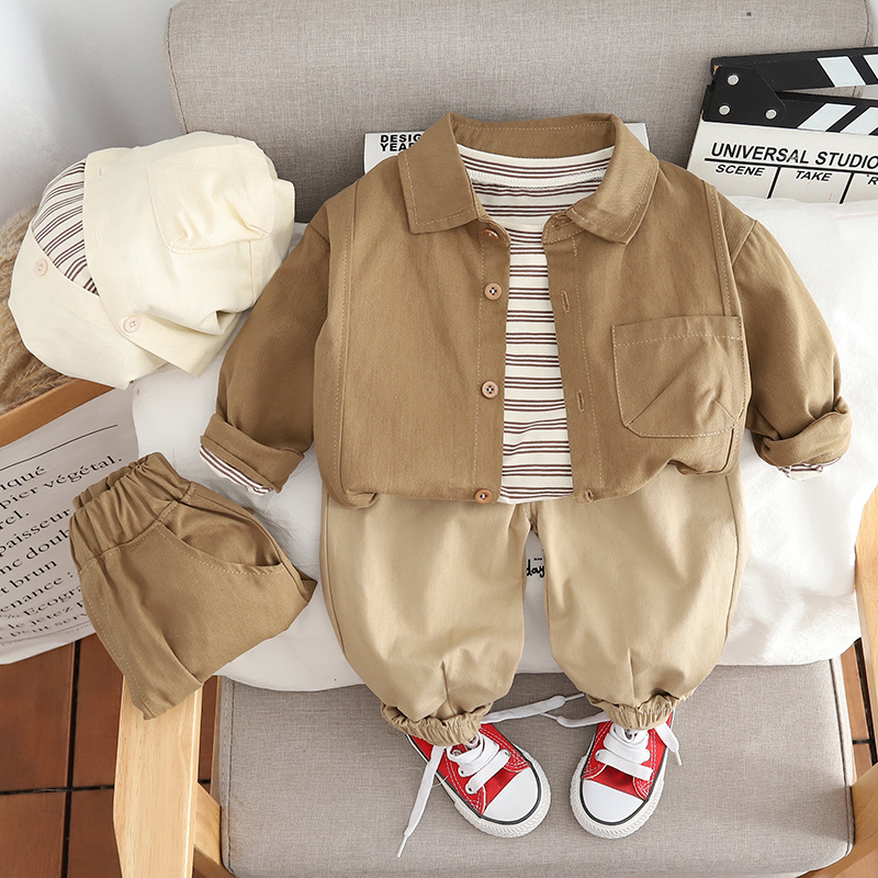 소년 가을 옷 세트 2024 새로운 어린이 봄 가을 옷 아기 단색 셔츠 3 종 세트 패션스토어 가기