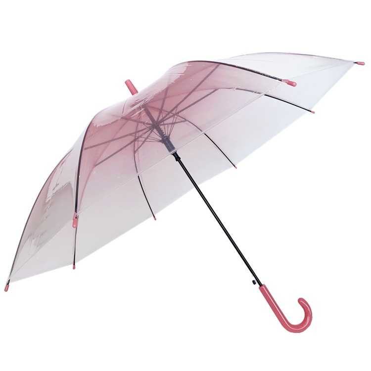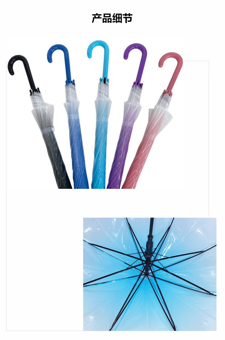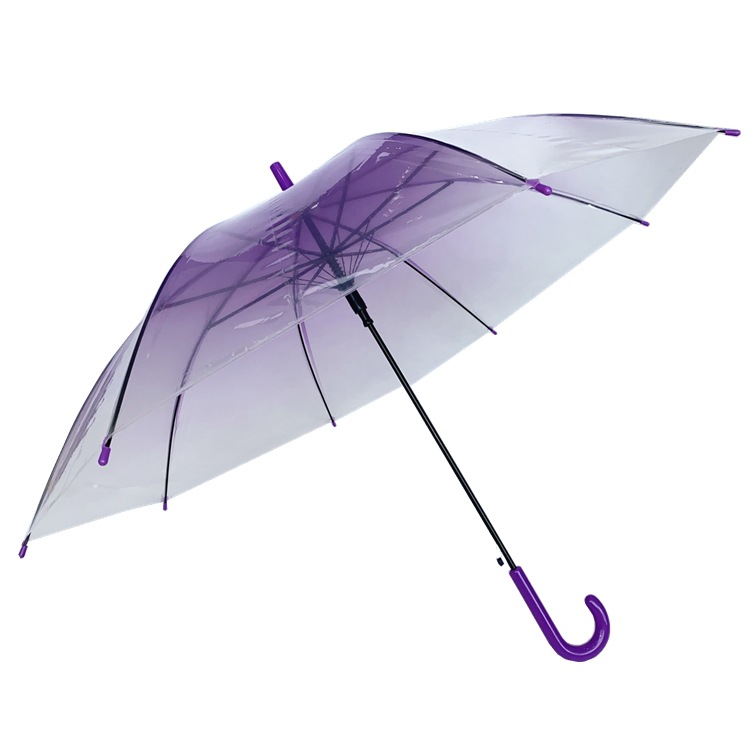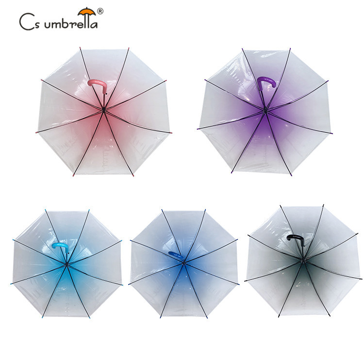 우산 제조업체의 새로운 창의적이고 신선한 인터넷 연예인 그라데이션 색상 투명 우산 긴 손잡이 자동 투명 POE 우산