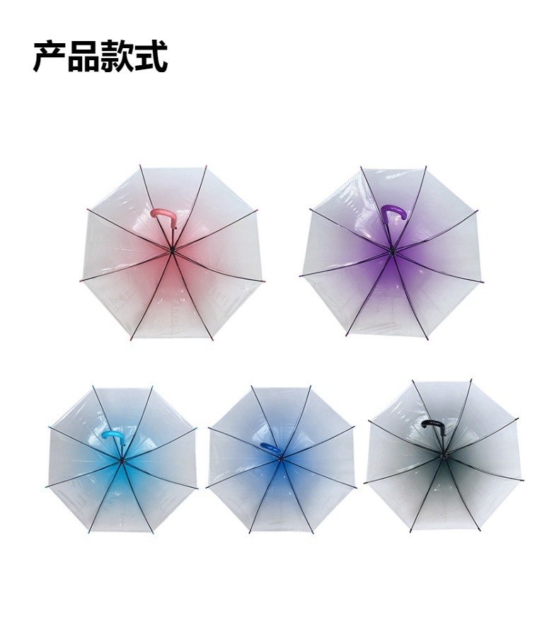 우산 제조업체의 새로운 창의적이고 신선한 인터넷 연예인 그라데이션 색상 투명 우산 긴 손잡이 자동 투명 POE 우산스토어 가기
