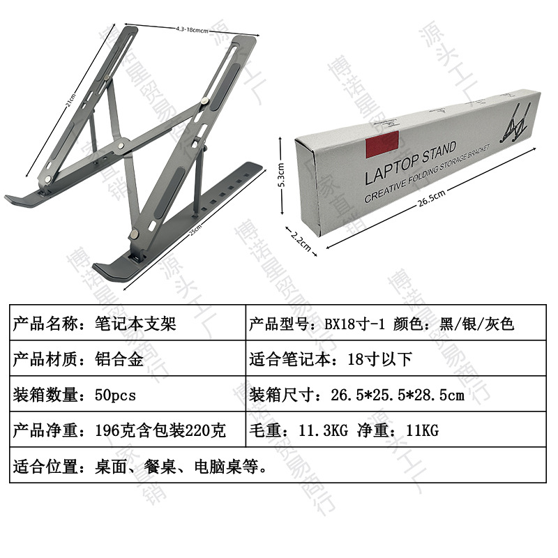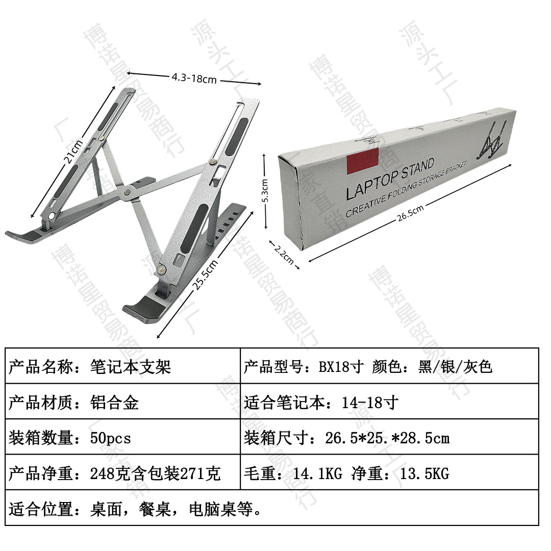 노트북 스탠드, 태블릿 스탠드, 알루미늄 합금 컴퓨터 냉각 데스크탑 높이 조절 브래킷, 접이식 리프트