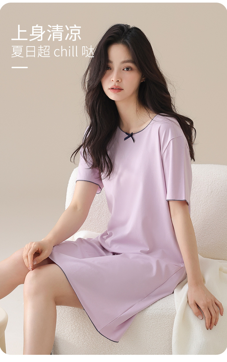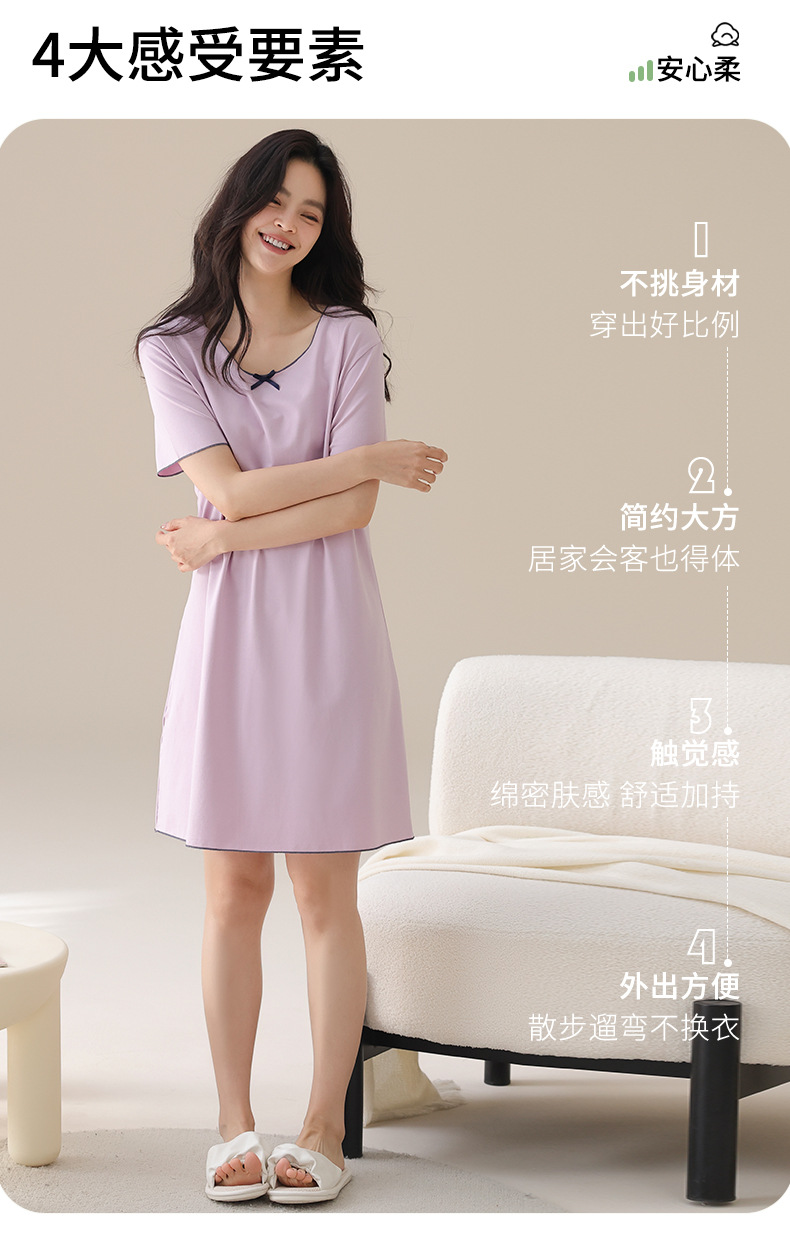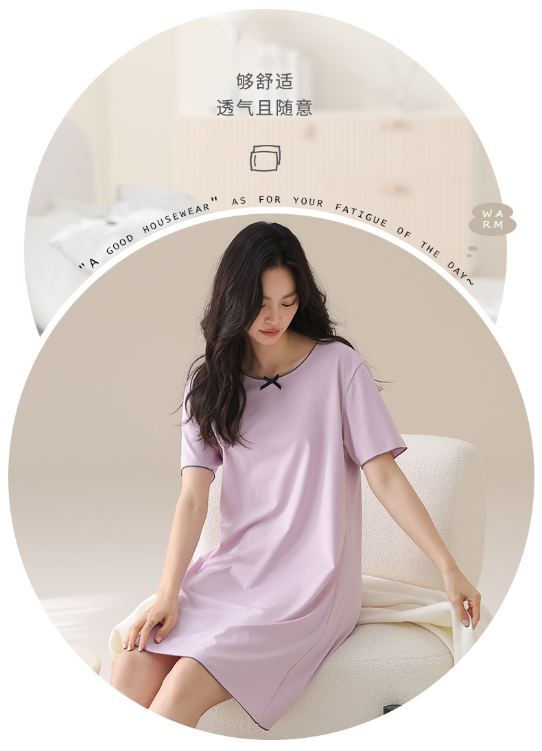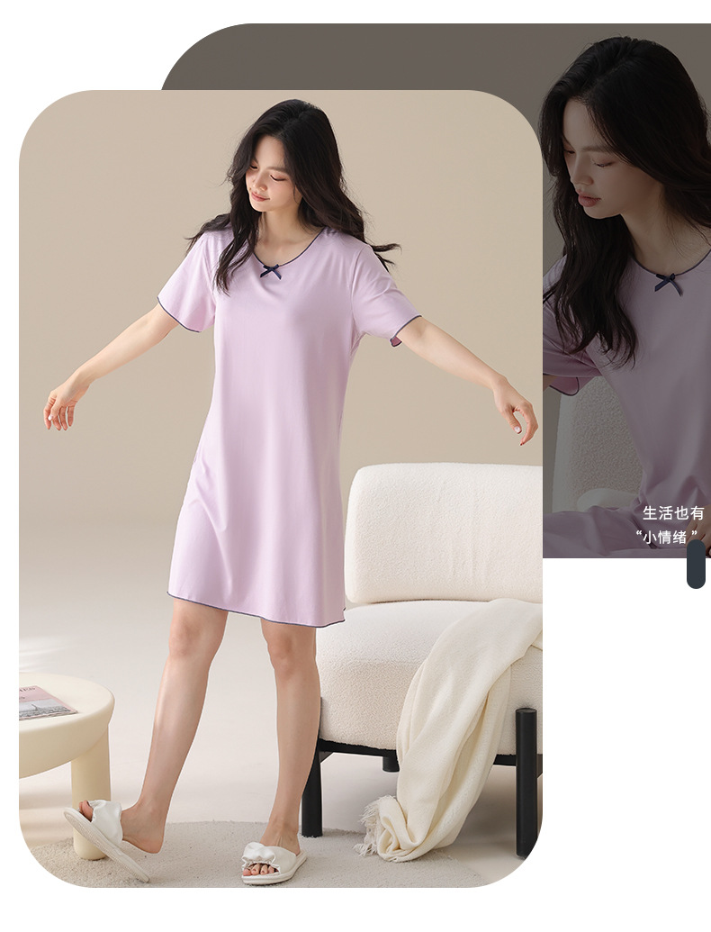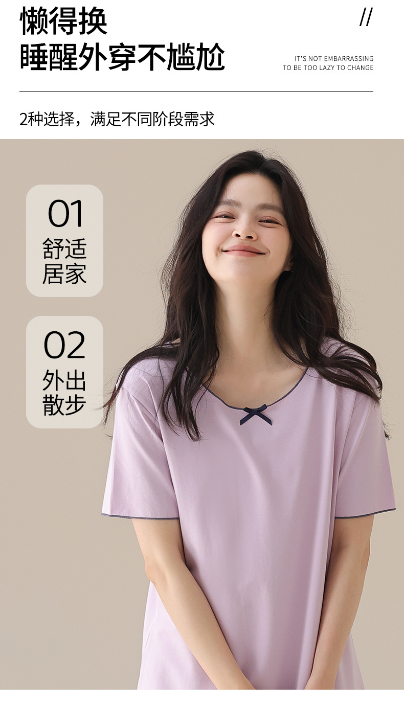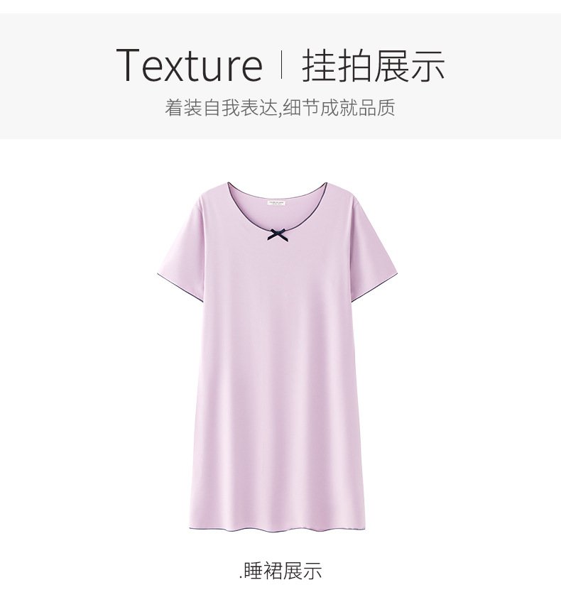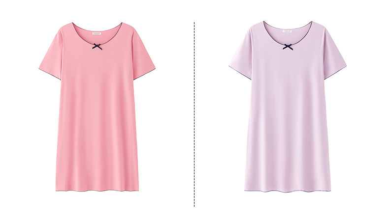 물롱 귀족 가족 나이트 드레스 여성 여름 반팔 라운드 넥 모달 아이스 실크 여름 캐주얼 아웃웨어 느슨한 여성 나이트 드레스스토어 가기