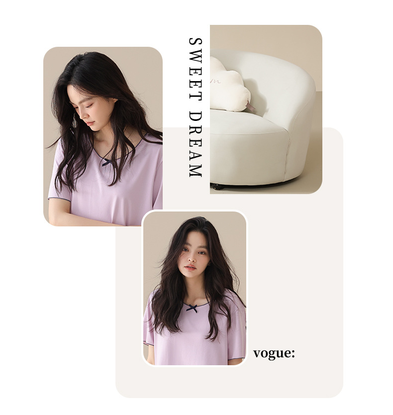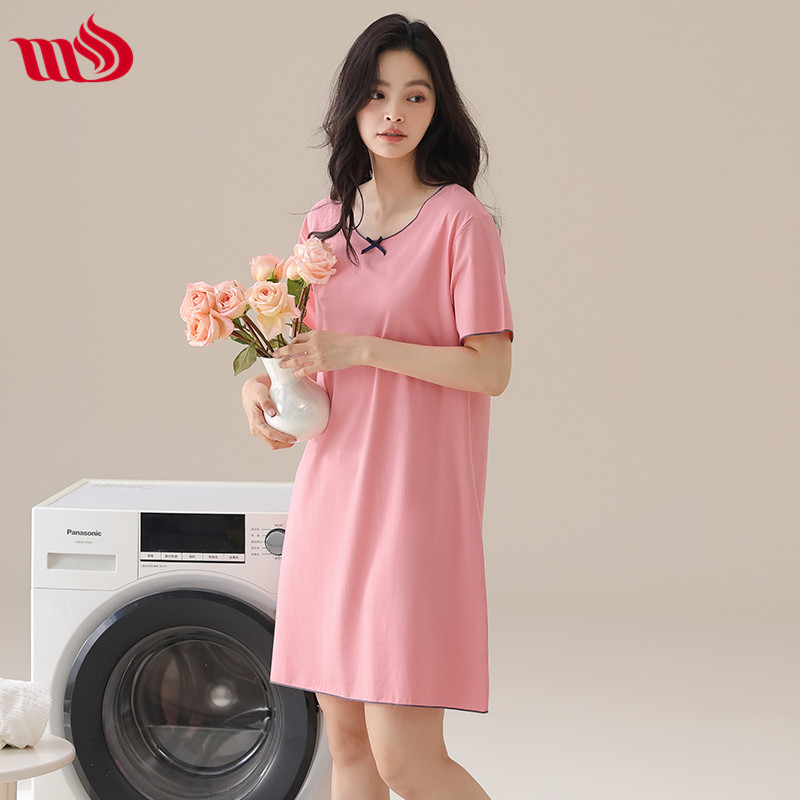 물롱 귀족 가족 나이트 드레스 여성 여름 반팔 라운드 넥 모달 아이스 실크 여름 캐주얼 아웃웨어 느슨한 여성 나이트 드레스