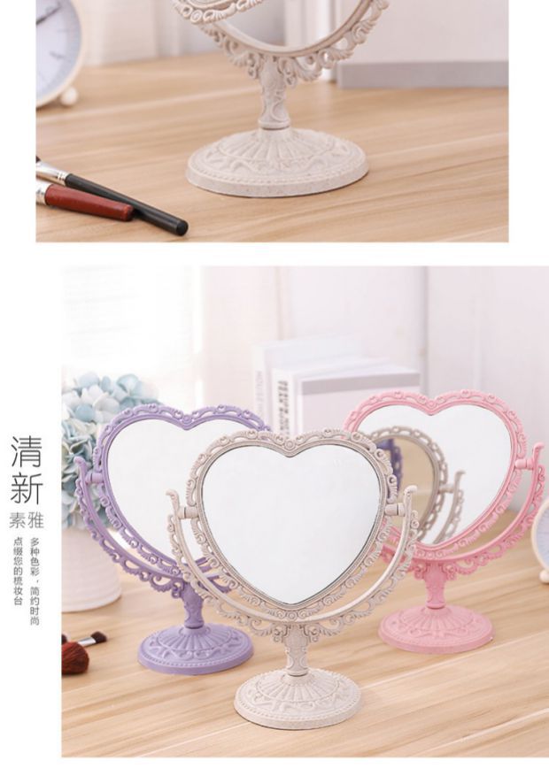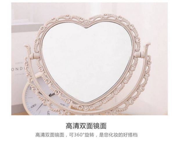 사랑 모양의 기숙사 데스크탑 공주 거울 바탕 화면 장식 소녀 핑크 하트 메이크업 드레싱 거울
