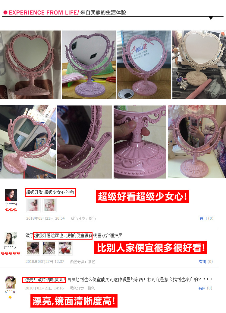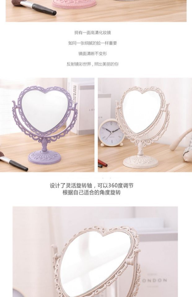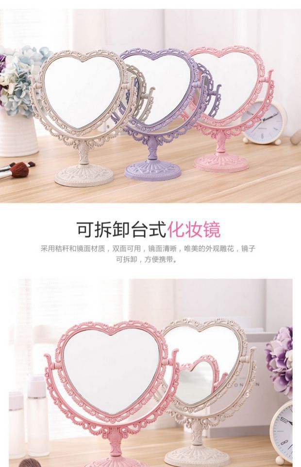 사랑 모양의 기숙사 데스크탑 공주 거울 바탕 화면 장식 소녀 핑크 하트 메이크업 드레싱 거울스토어 가기
