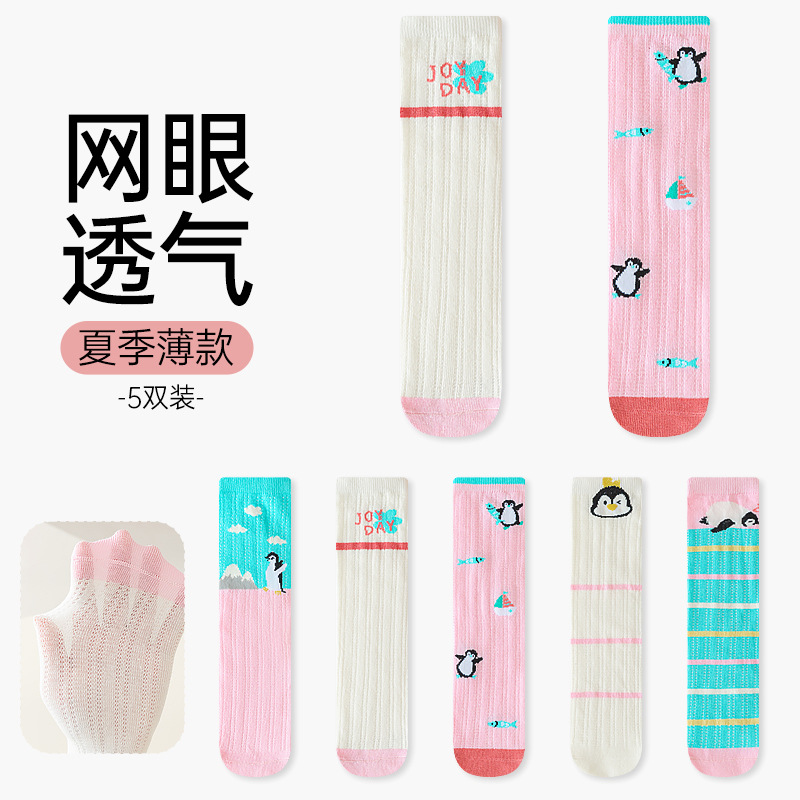 어린이 양말 만화 개 봄과 여름 여자 남자 아기 웨이브 줄무늬 단색 비 뒤꿈치 메쉬 통기성 얇은 면화 아기 양말