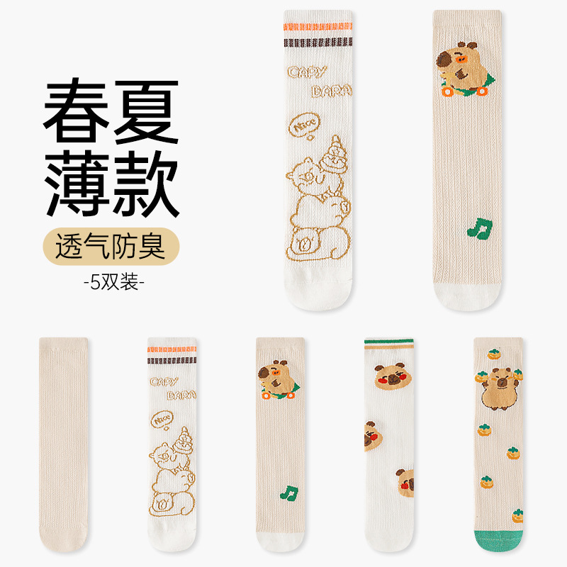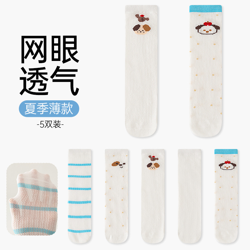 어린이 양말 만화 개 봄과 여름 여자 남자 아기 웨이브 줄무늬 단색 비 뒤꿈치 메쉬 통기성 얇은 면화 아기 양말스토어 가기