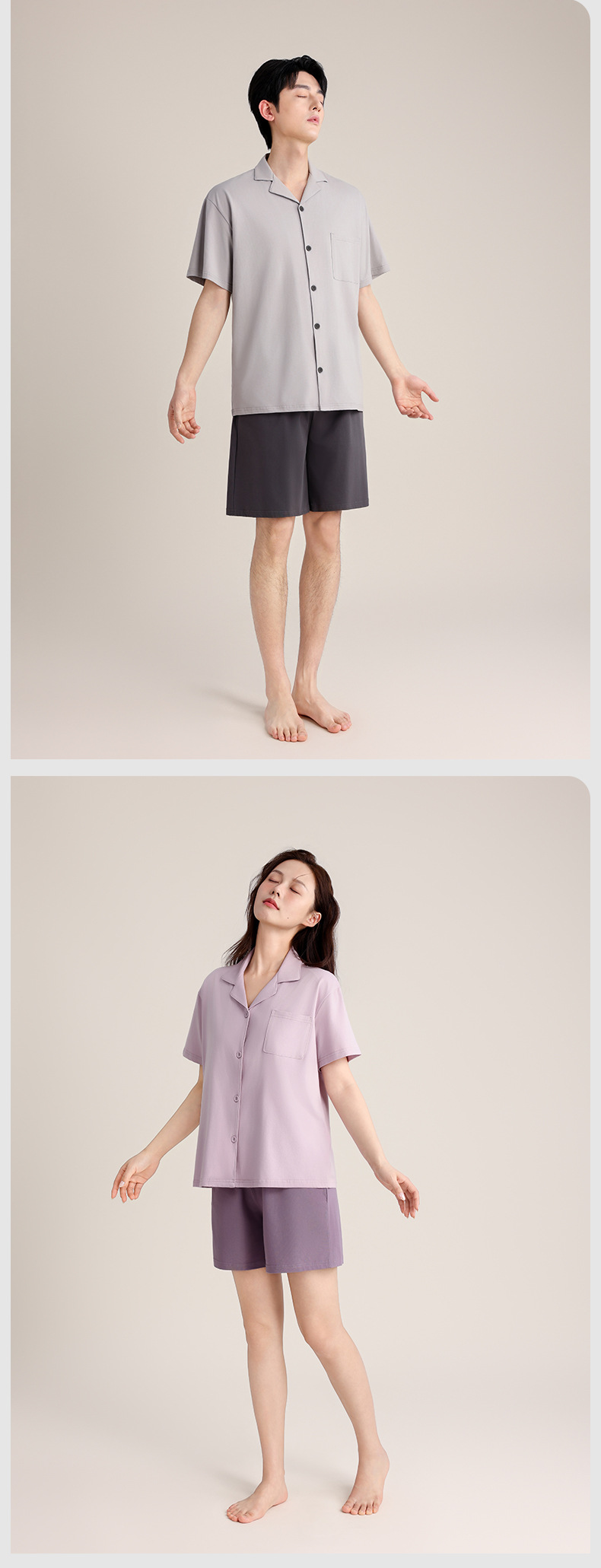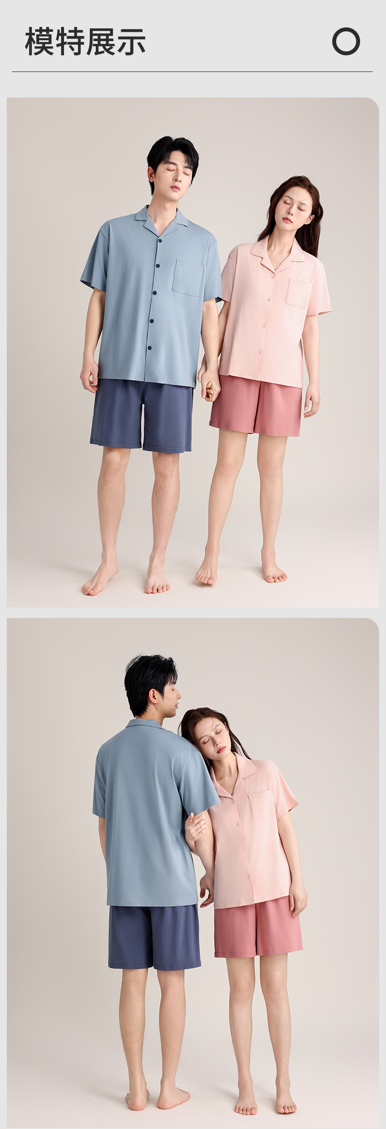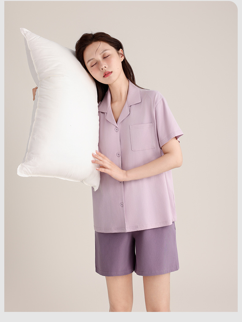 여름 잠옷 여성의 여름 통기성 땀 흡수 짧은 소매 커플의 부드러운 면 느슨한 홈 의류 여름 반바지 세트 남성스토어 가기
