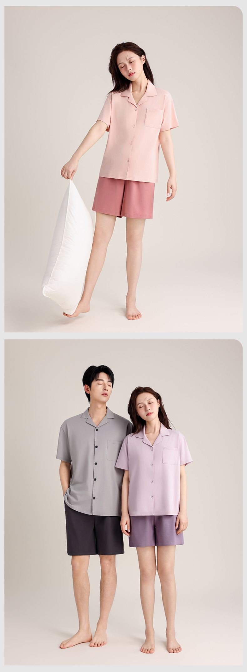 여름 잠옷 여성의 여름 통기성 땀 흡수 짧은 소매 커플의 부드러운 면 느슨한 홈 의류 여름 반바지 세트 남성