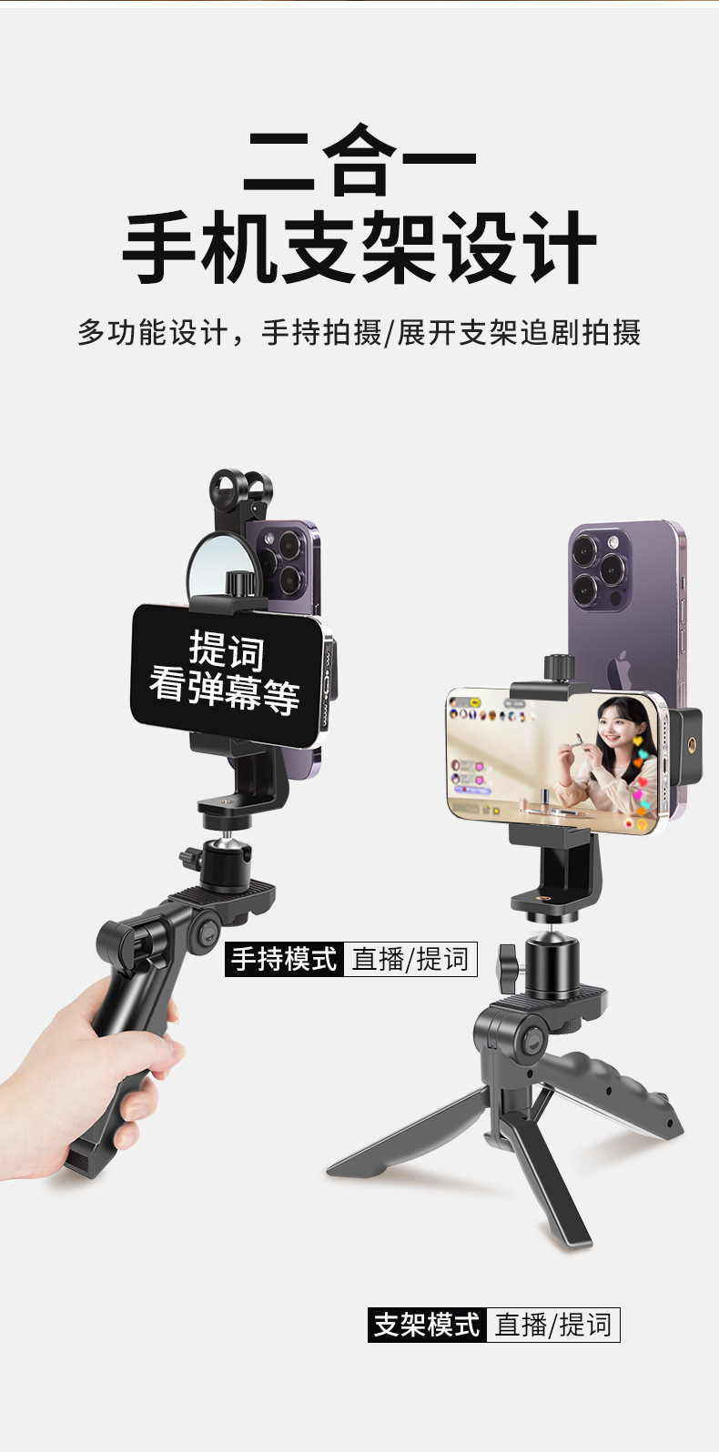휴대 전화 텔레 프롬프터 브래킷 데스크탑 양면 휴대 전화 클립 다기능 블루투스 촬영 듀얼 포트 방송 핸드 헬드 비디오 녹화