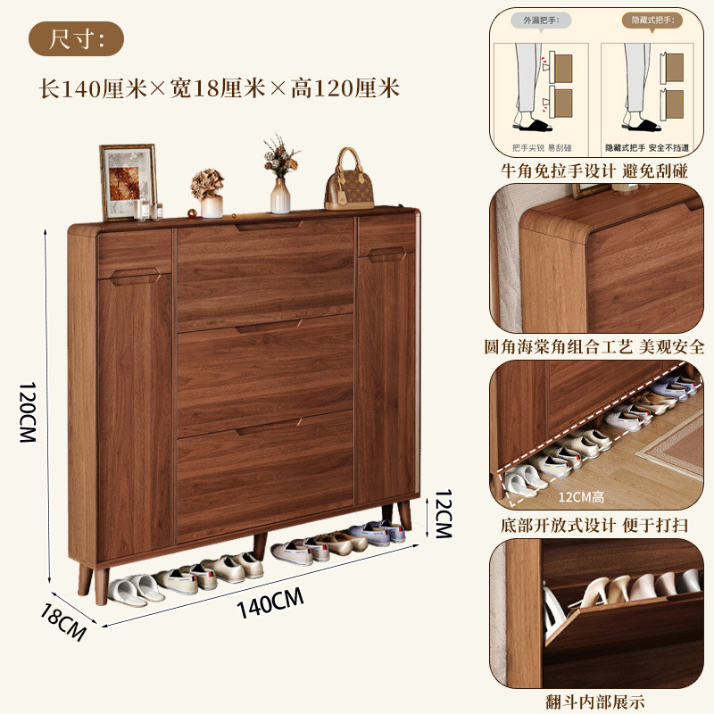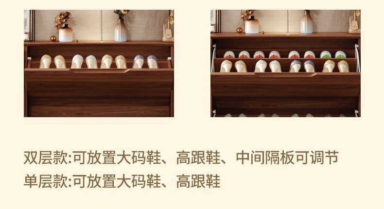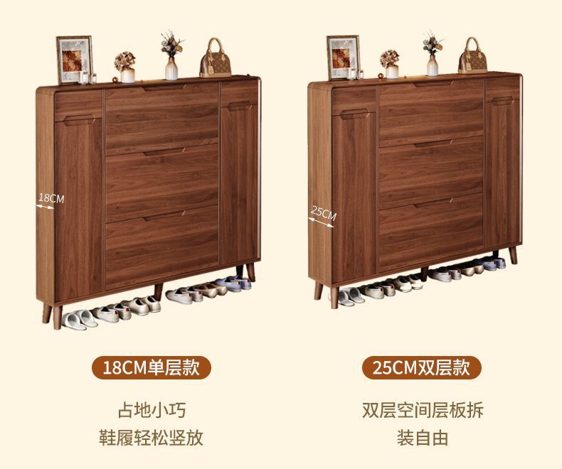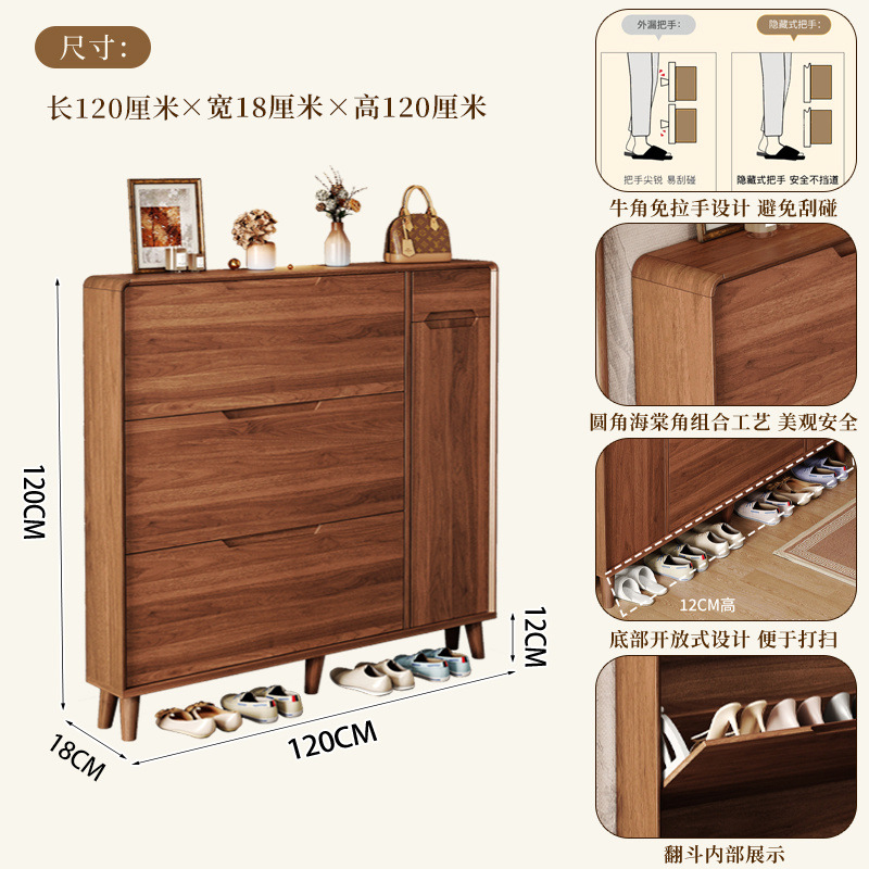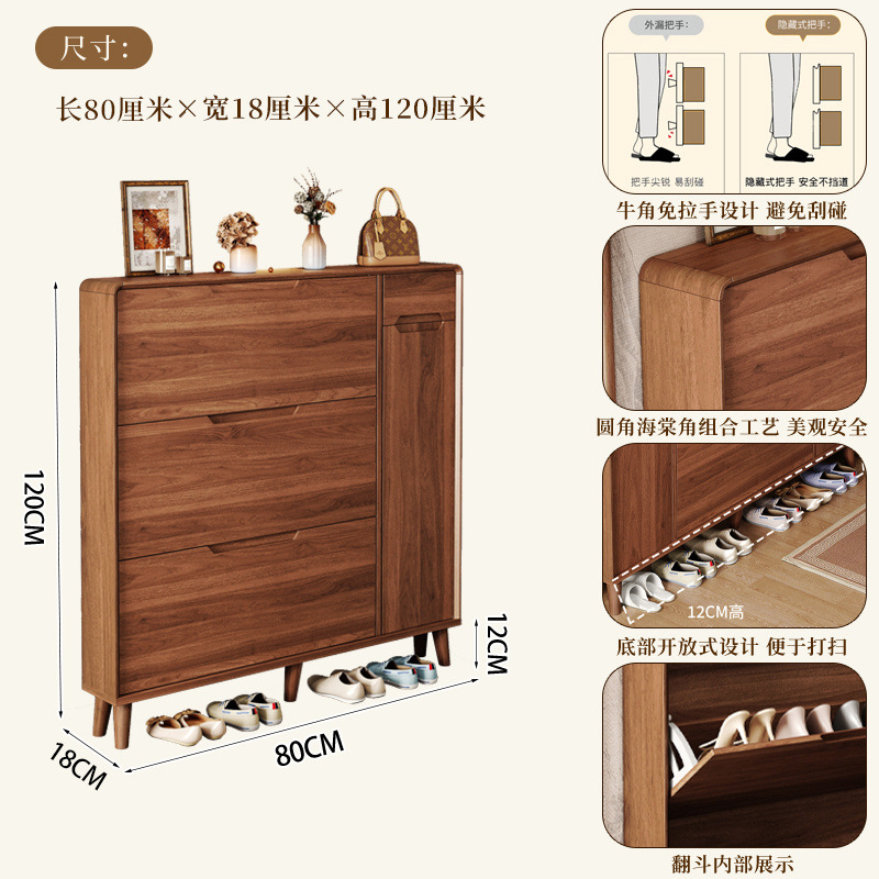 새로운 중국 스타일의 울트라 얇은 터닝 버킷 신발 캐비닛 가정용 도어 입구 도어 벽 복도 통합 솔리드 우드 컬러 가정용 신발 랙