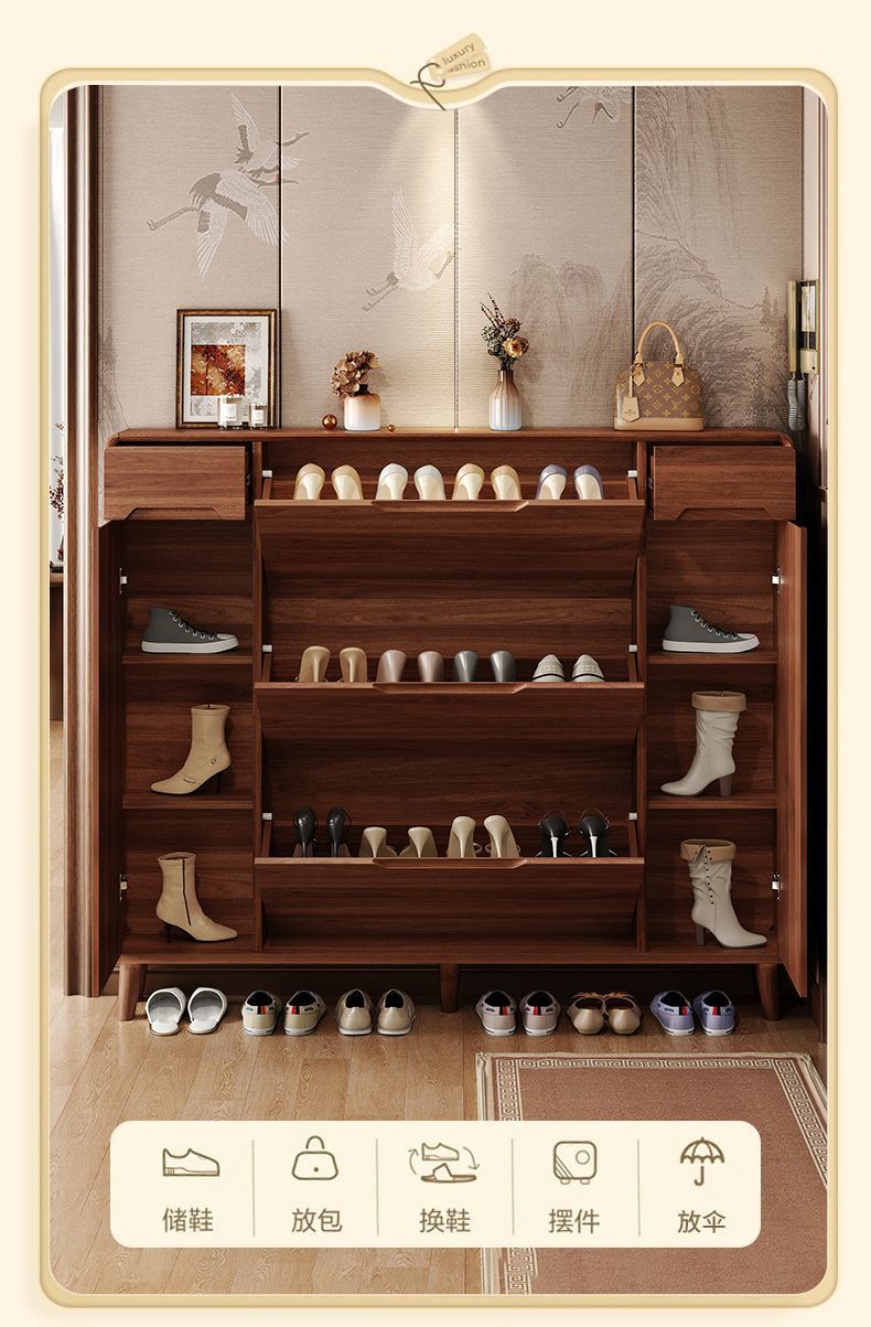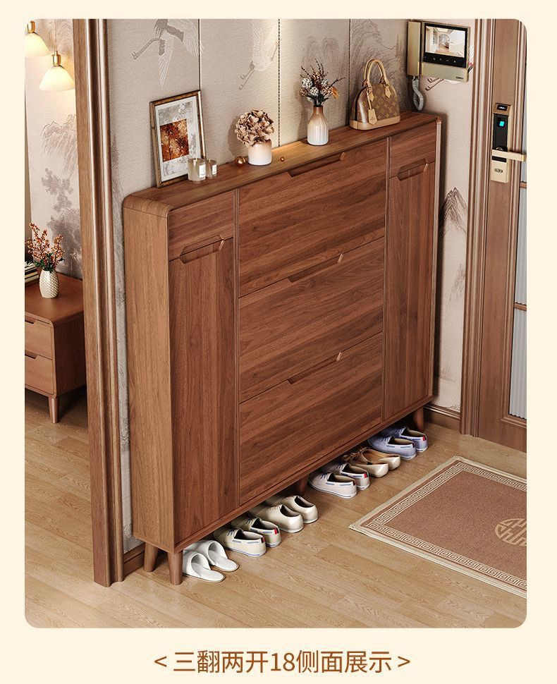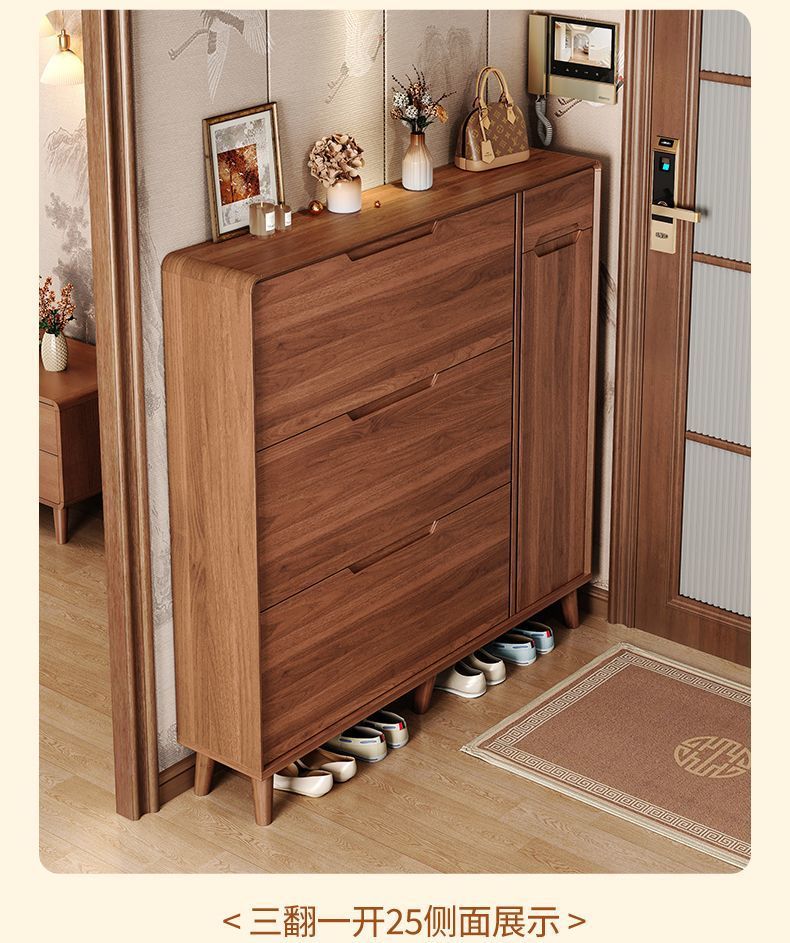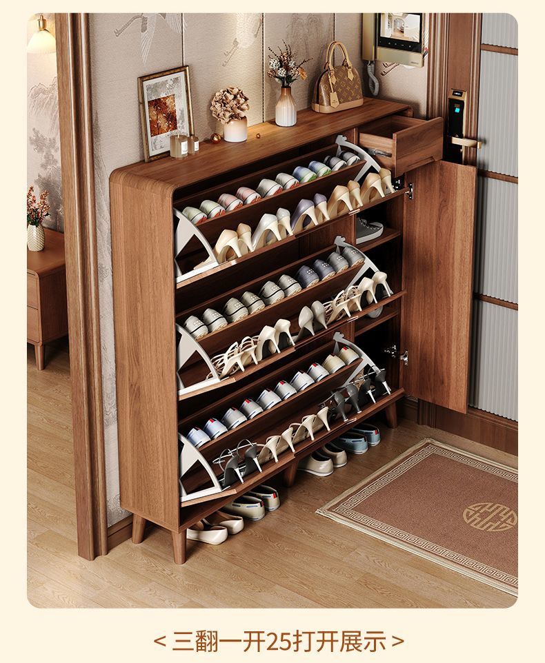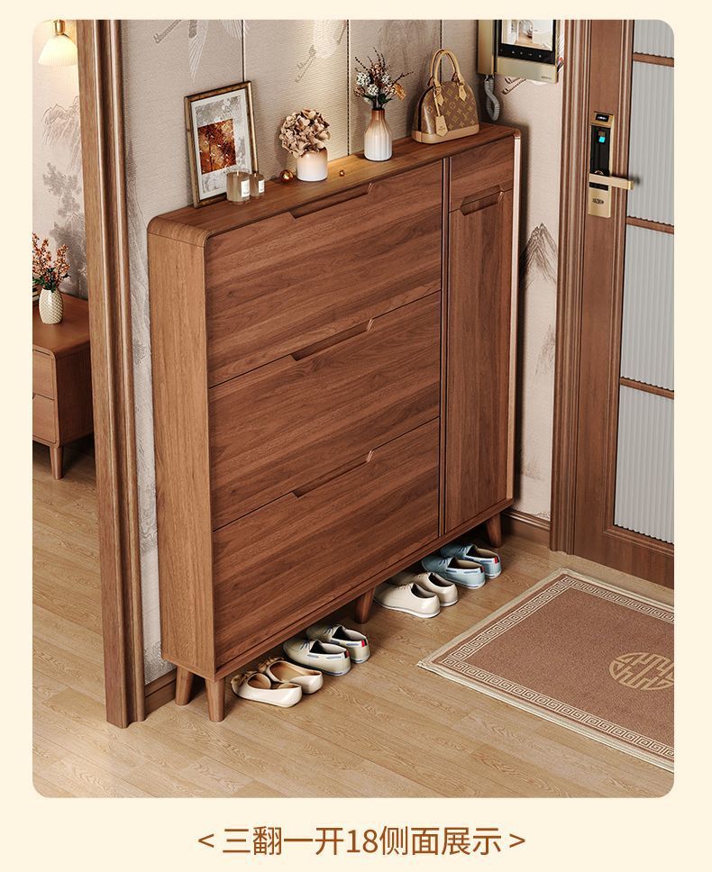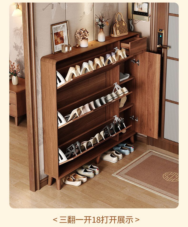 새로운 중국 스타일의 울트라 얇은 터닝 버킷 신발 캐비닛 가정용 도어 입구 도어 벽 복도 통합 솔리드 우드 컬러 가정용 신발 랙스토어 가기