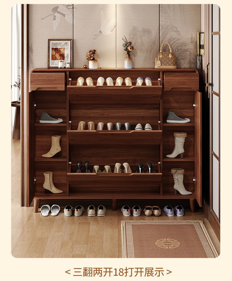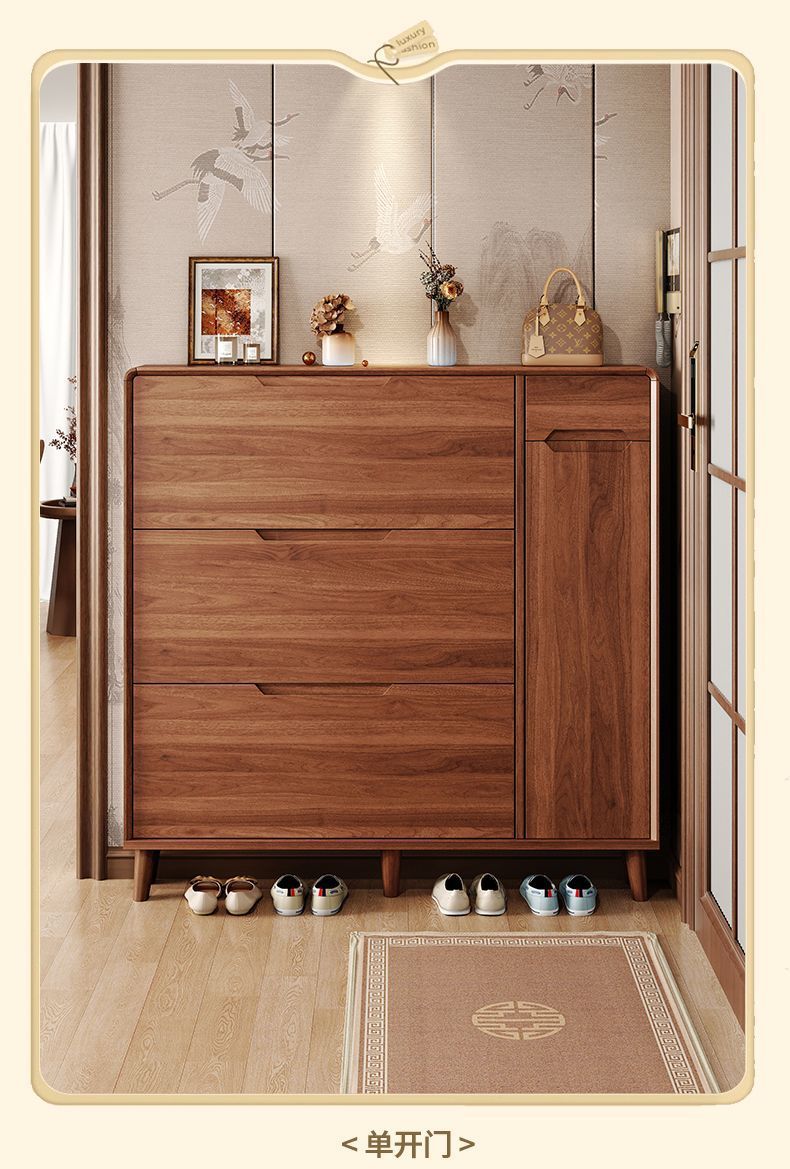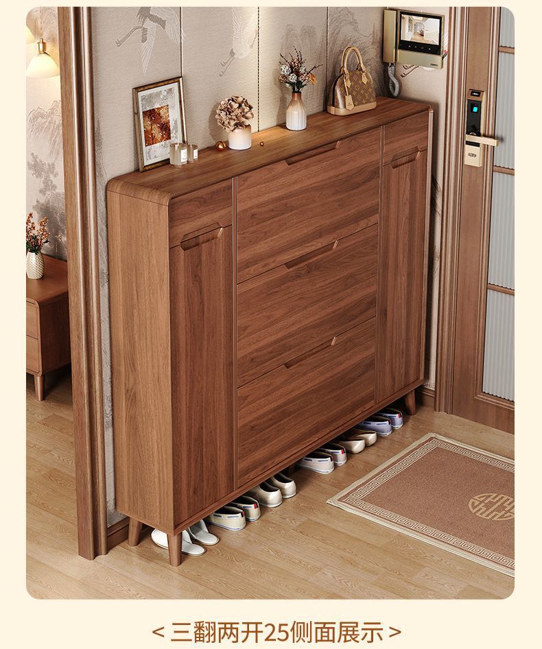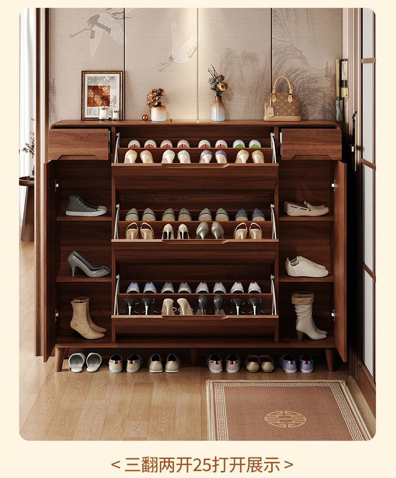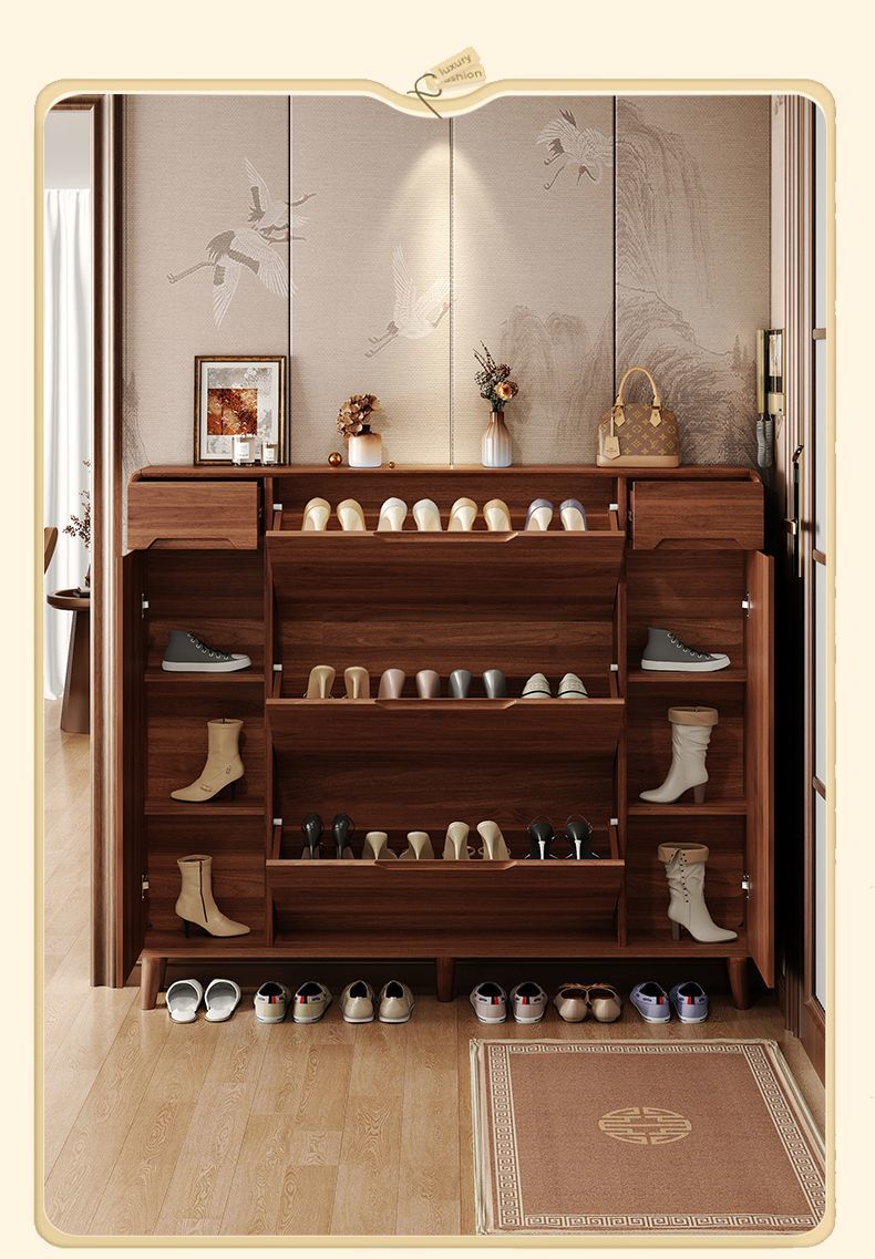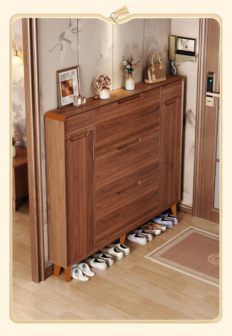새로운 중국 스타일의 울트라 얇은 터닝 버킷 신발 캐비닛 가정용 도어 입구 도어 벽 복도 통합 솔리드 우드 컬러 가정용 신발 랙스토어 가기