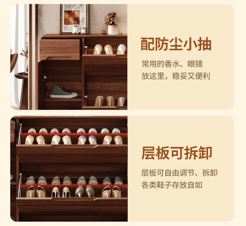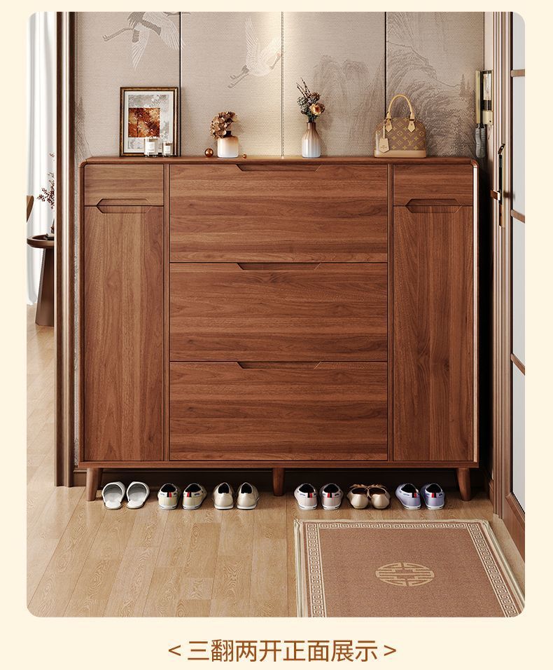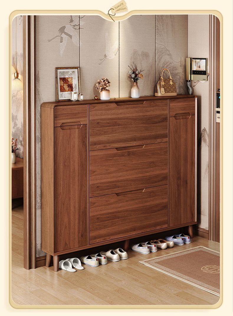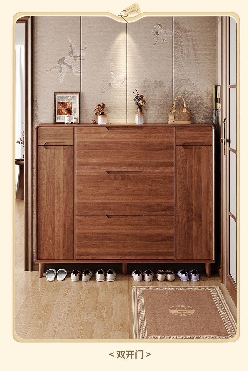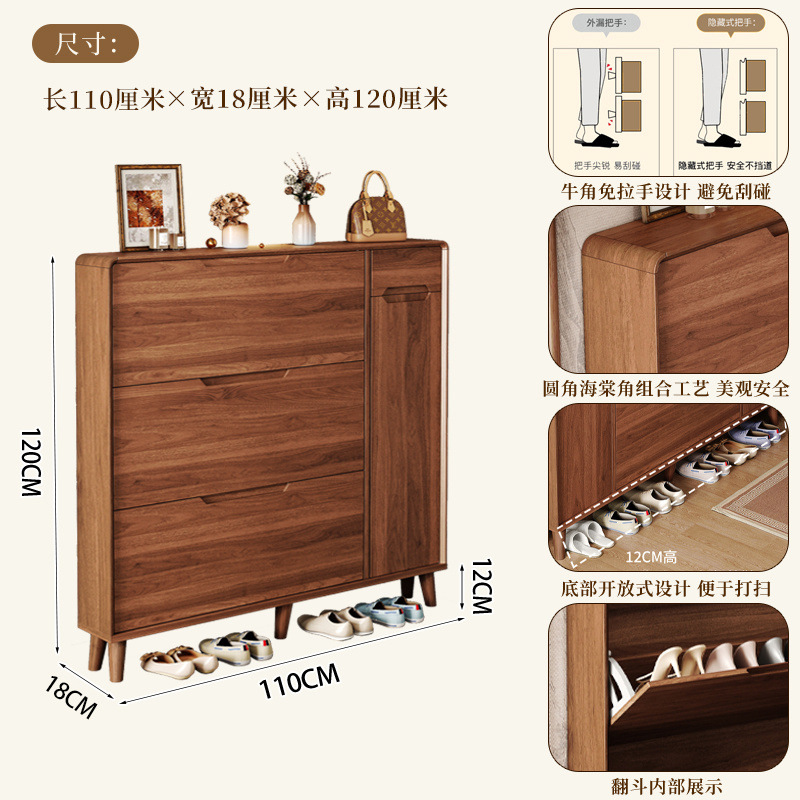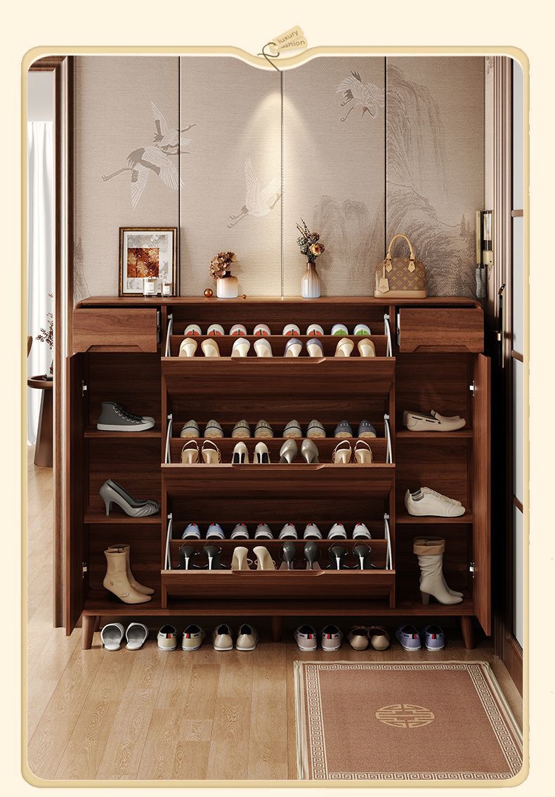 새로운 중국 스타일의 울트라 얇은 터닝 버킷 신발 캐비닛 가정용 도어 입구 도어 벽 복도 통합 솔리드 우드 컬러 가정용 신발 랙스토어 가기