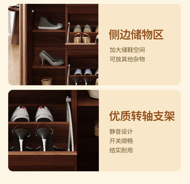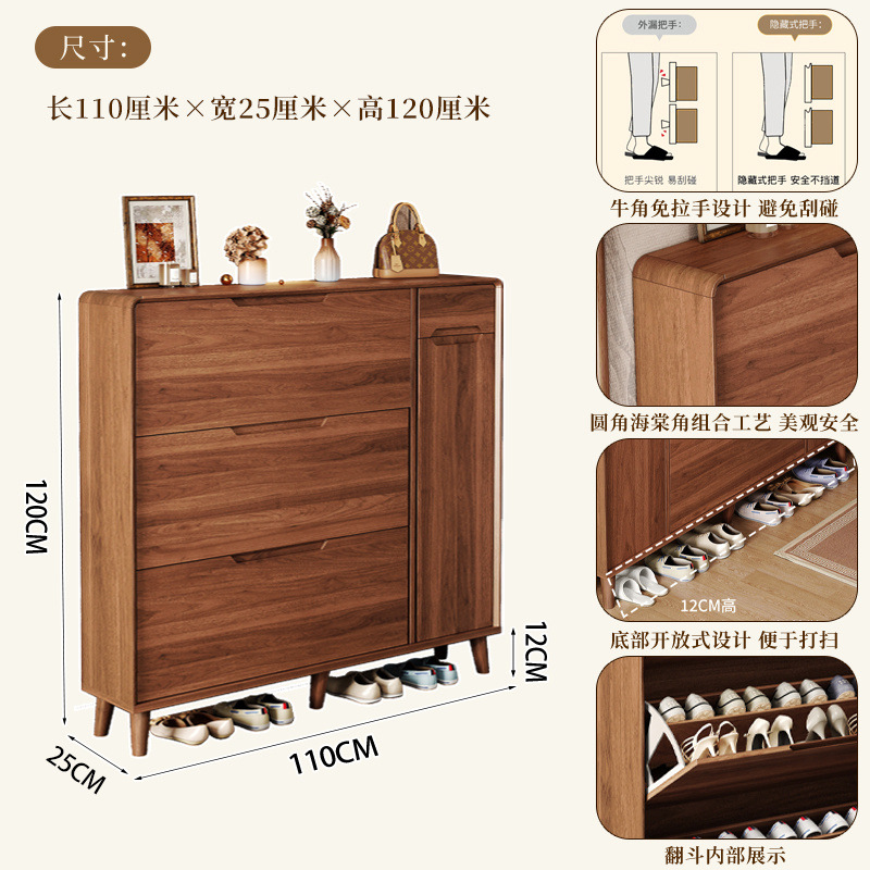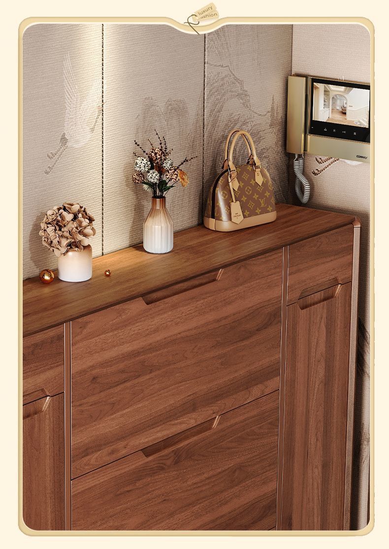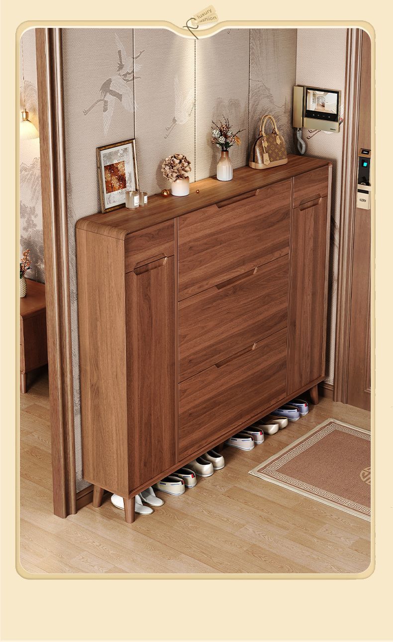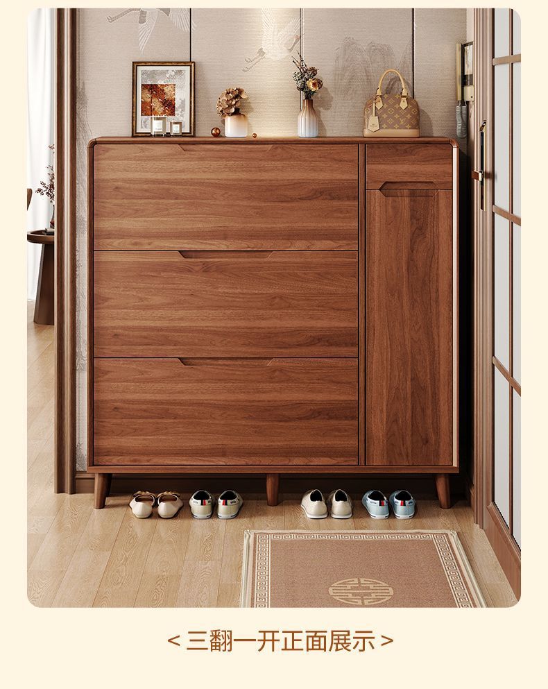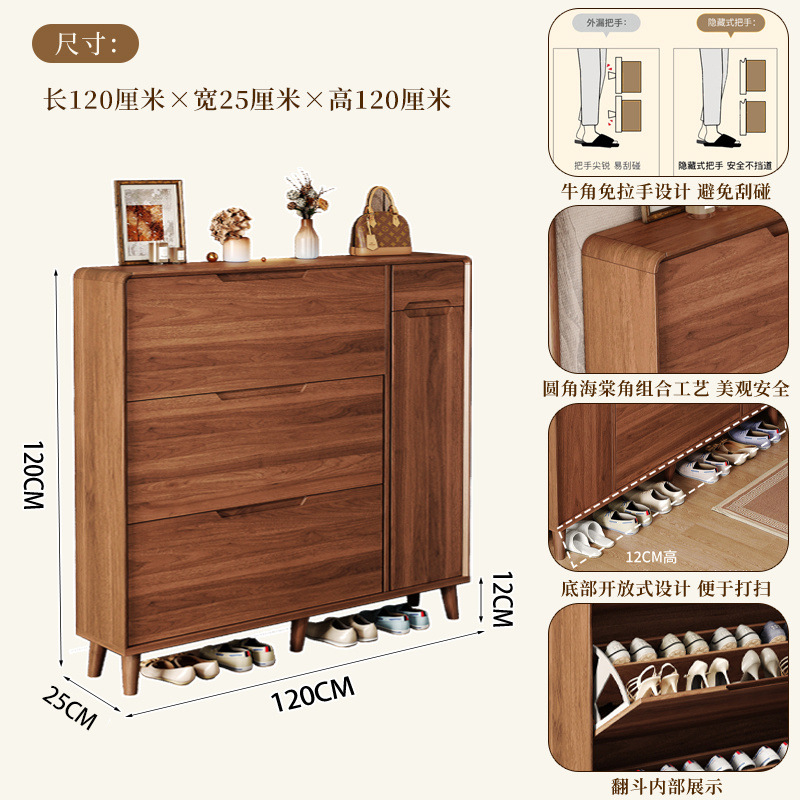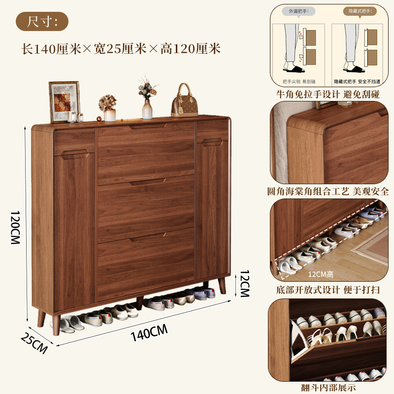 새로운 중국 스타일의 울트라 얇은 터닝 버킷 신발 캐비닛 가정용 도어 입구 도어 벽 복도 통합 솔리드 우드 컬러 가정용 신발 랙스토어 가기