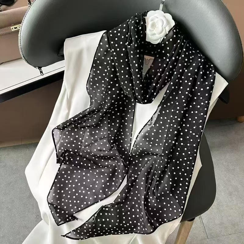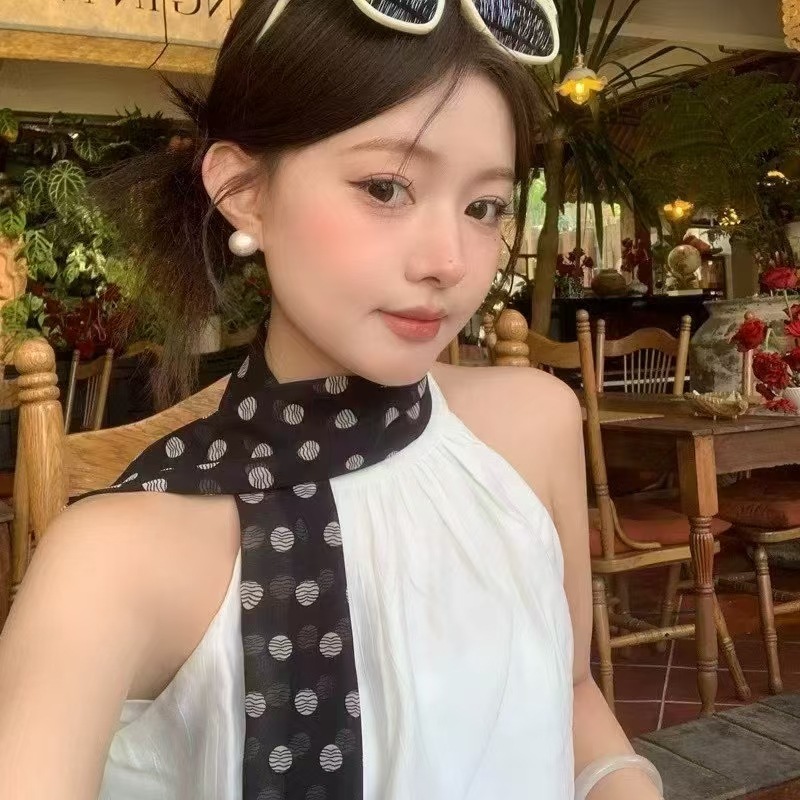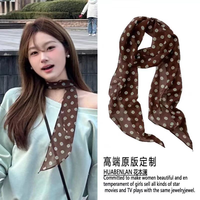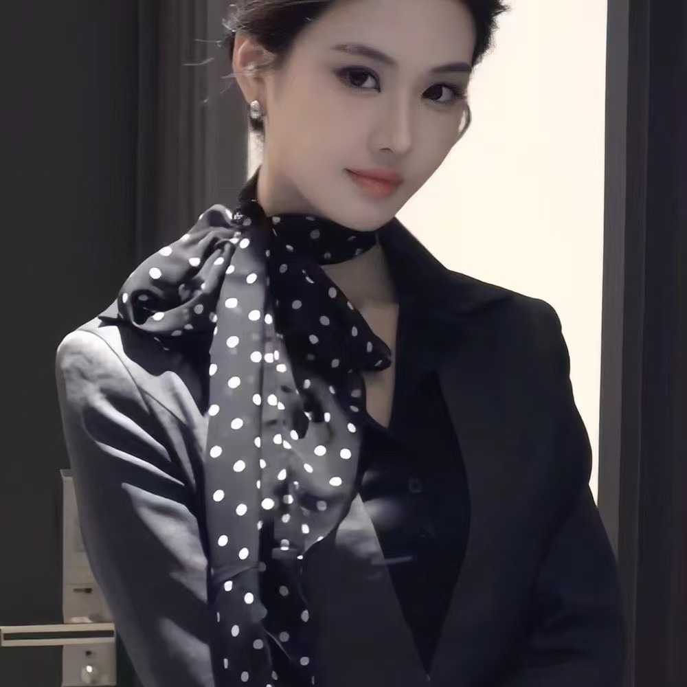 봄과 가을 긴 설문 조사 도트 실크 스카프 여성 목 하이 엔드 2025 새로운 목걸이 매칭 타이 백 헤어 스트랩 스카프스토어 가기