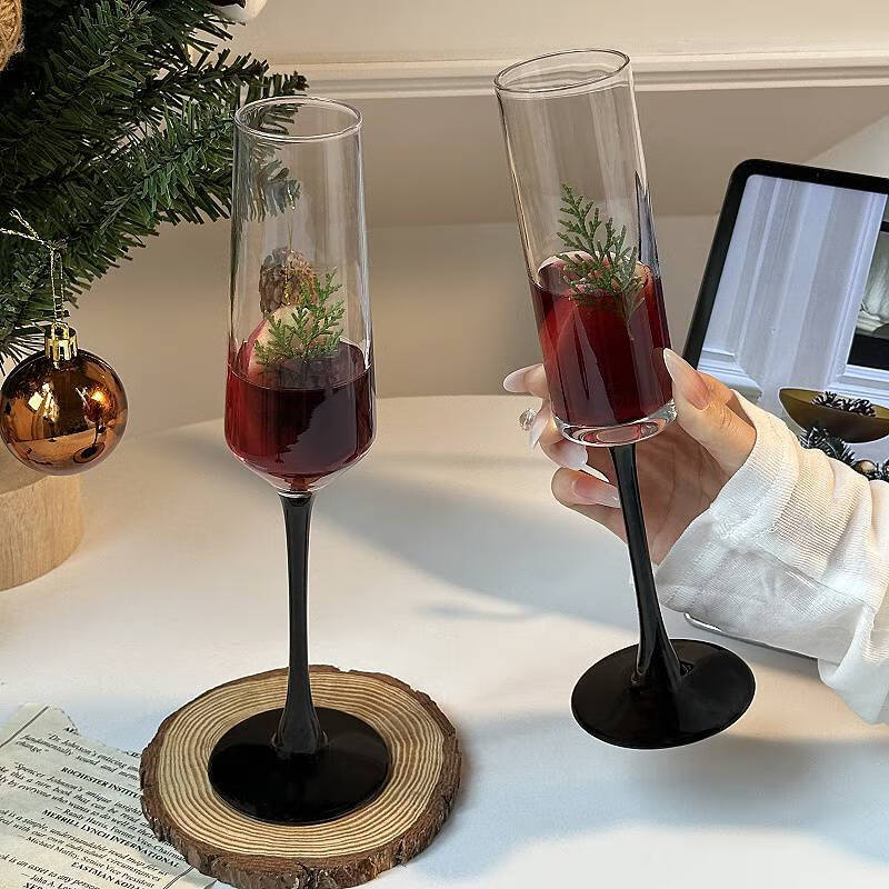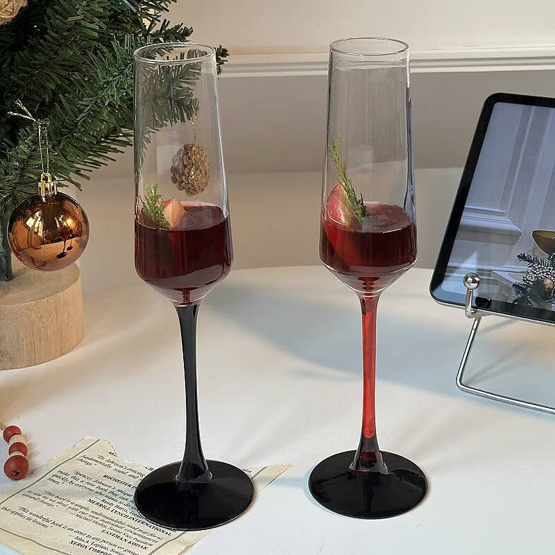 크리스마스 레드 막대 블랙 막대 샴페인 유리 팁 유리 레드 와인 잔 키 큰 칵테일 유리 스파클링 와인 유리 공장 스트레이트