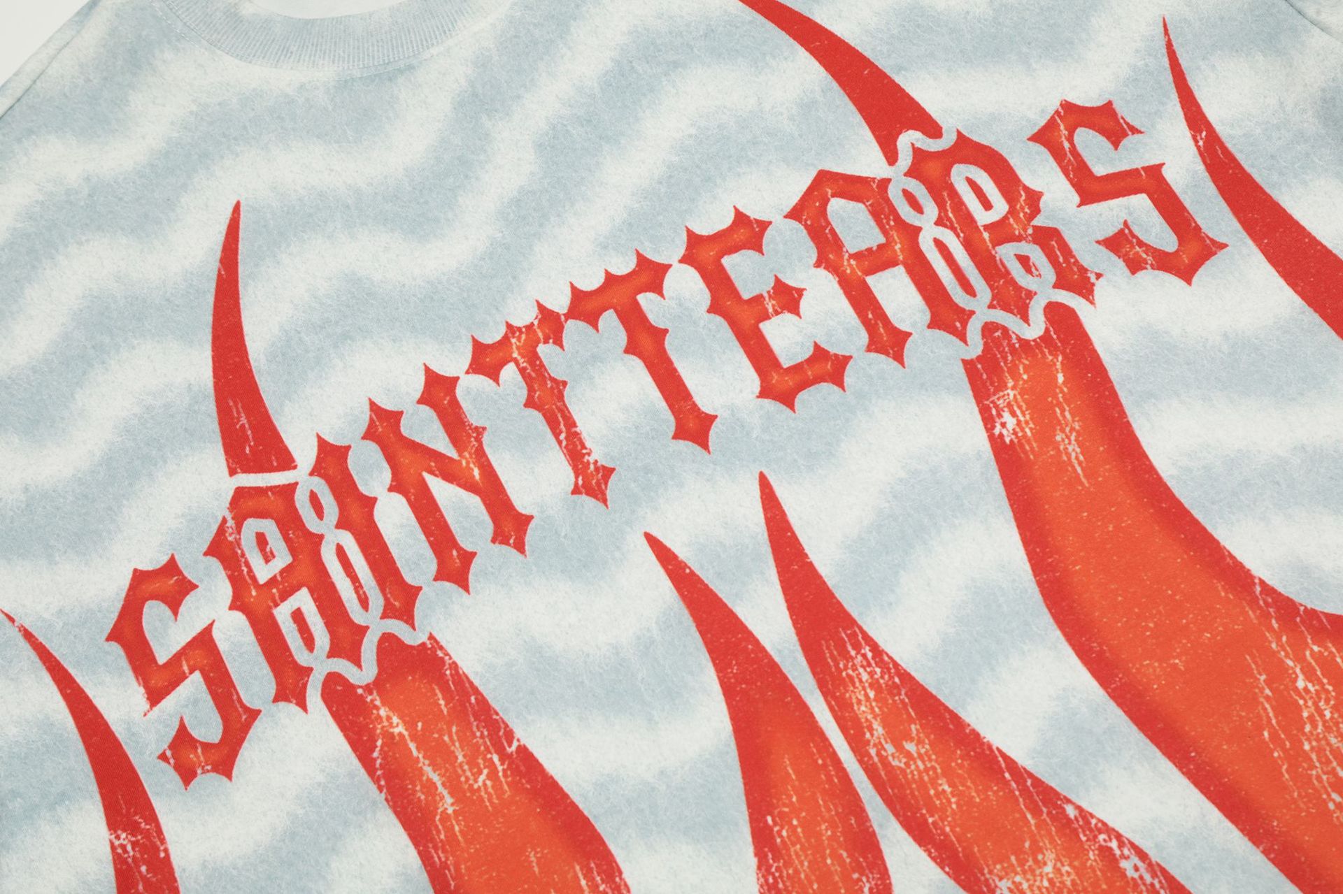 아메리칸 힙합 SAINT MICHAEL ICON 불꽃 로고 프린트 긴팔 캐주얼 루즈 보텀 셔츠 티셔츠