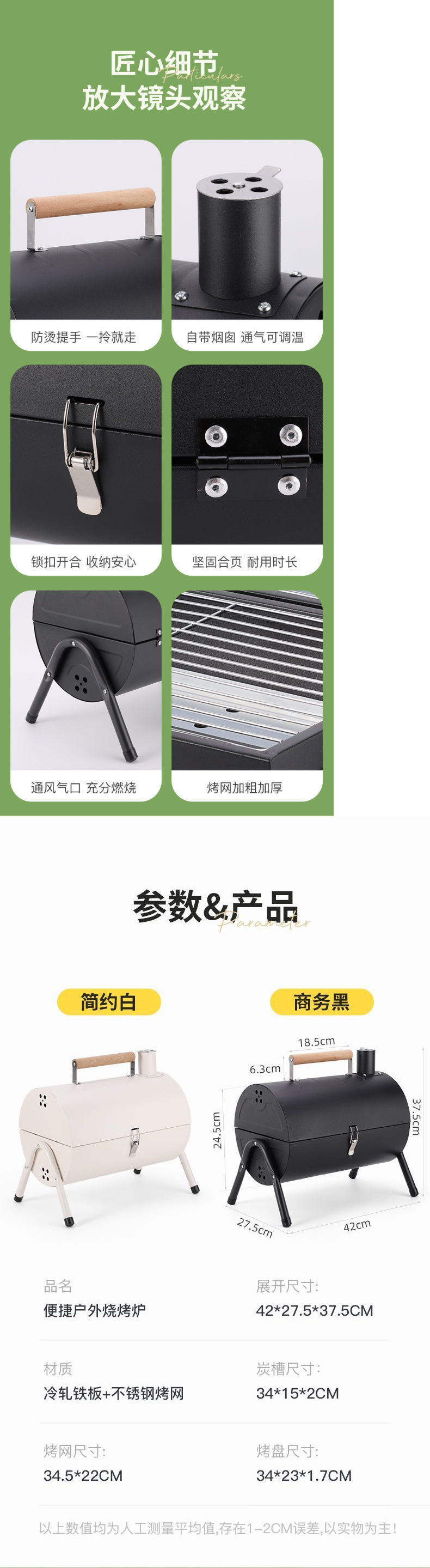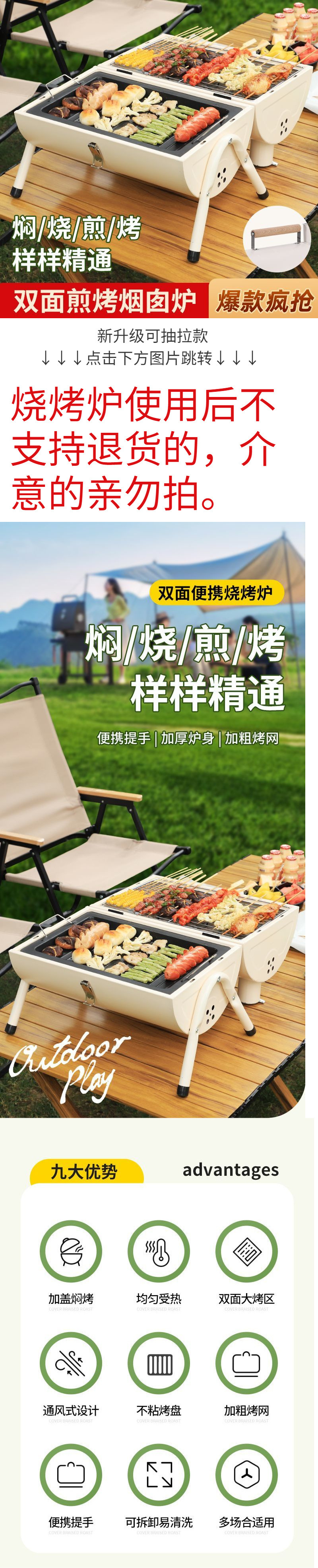 BBQ 그릴 바베큐 오븐 야외 휴대용 굴뚝 양면 홈 스토브 캠핑 바베큐 숯 공장 도매