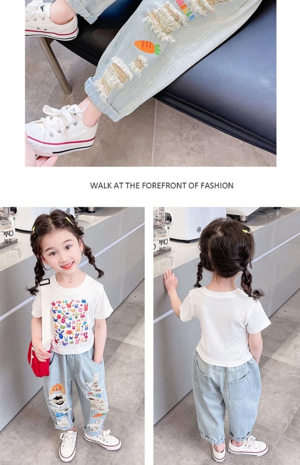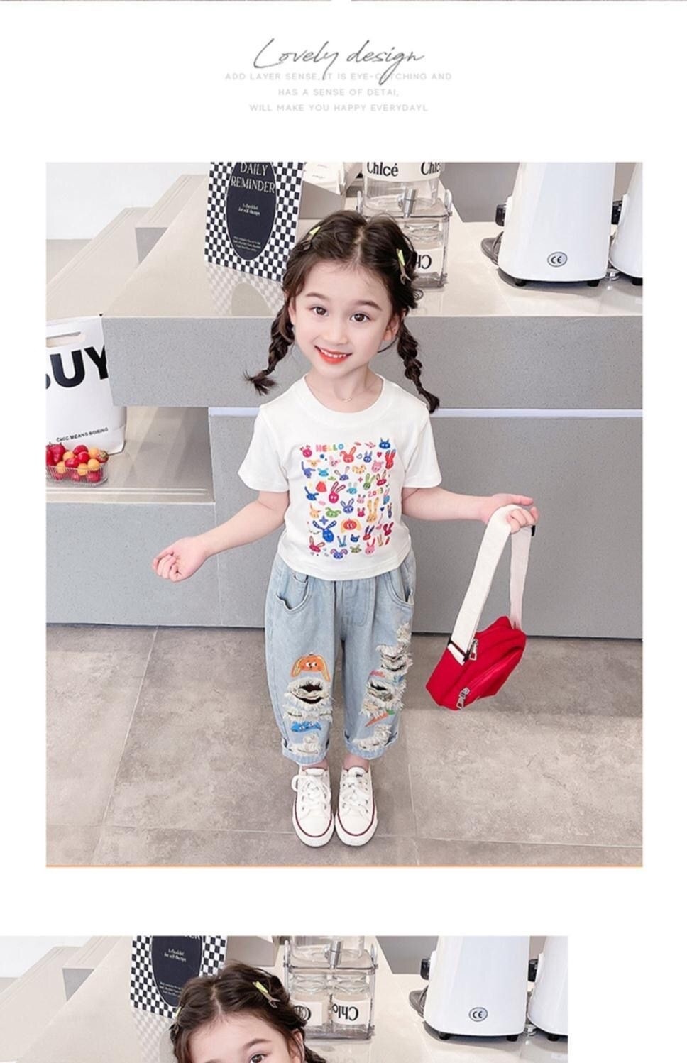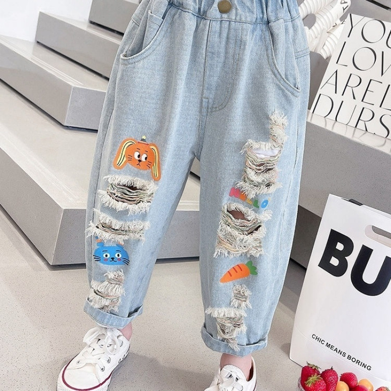 소녀 청바지 여름 2025 새로운 어린이 낙서 구멍 캐주얼 바지 얇은 남녀 패션 바지스토어 가기