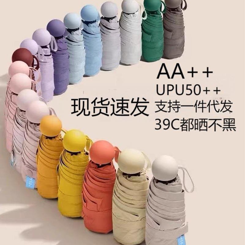 5 배 우산 포켓 우산 UV 보호 우산 Upf50 미니 캡슐 우산 6 뼈 작은 신선하고 컴팩트 한 휴대용 여성용 파라솔