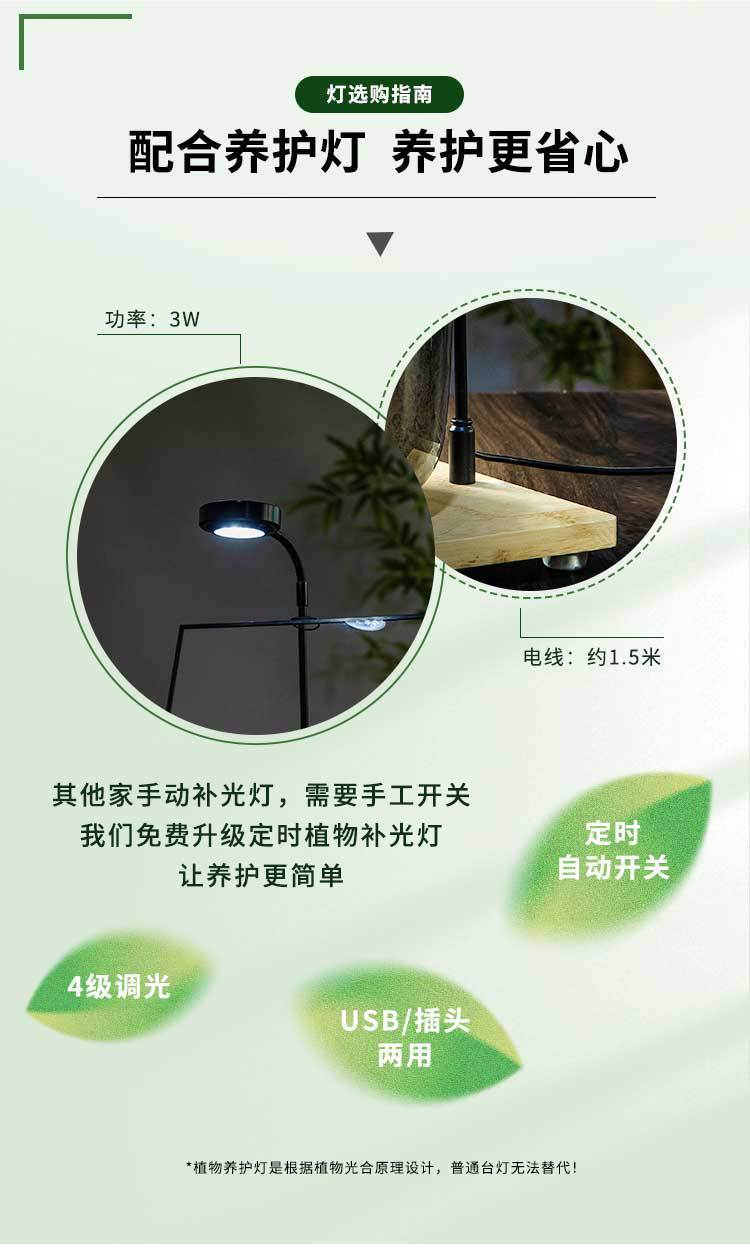 • Yulu는 완제품 배송을 제공합니다. 유지 관리에 권장됩니다. 유지 관리 세트 + 정기적인 식물 보충 조명을 제공합니다.