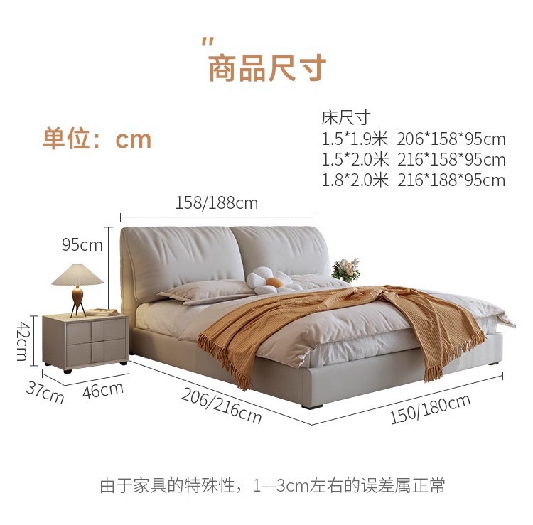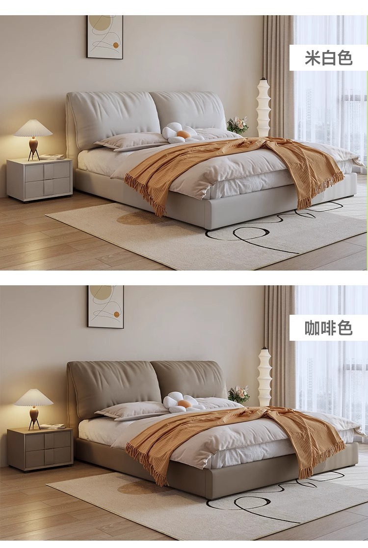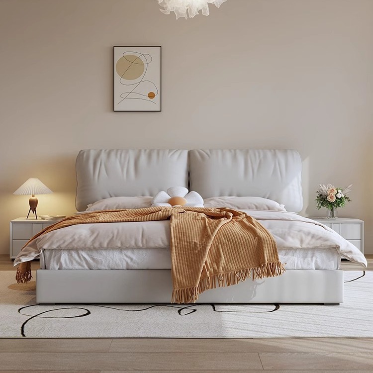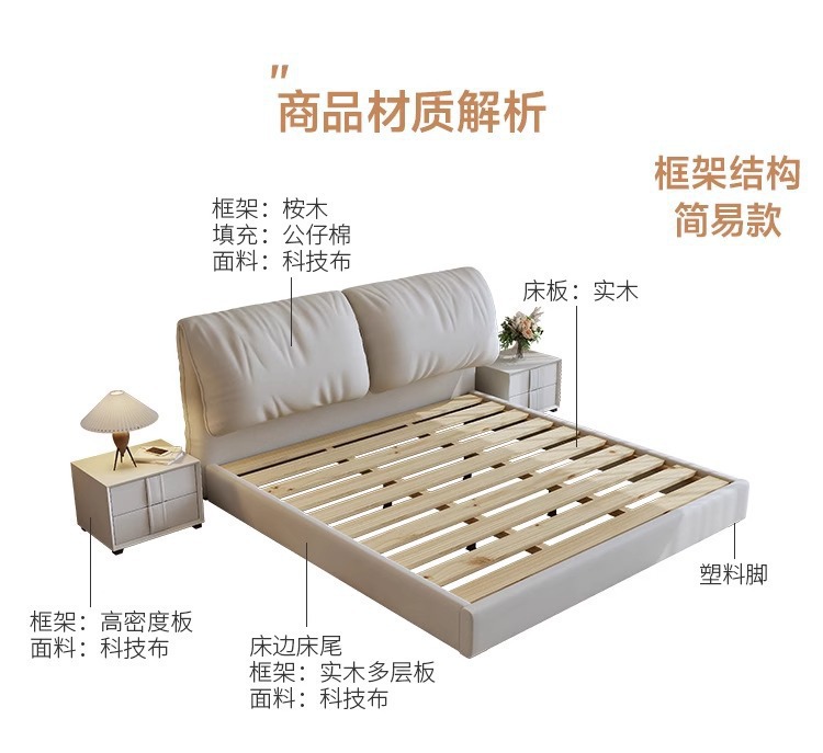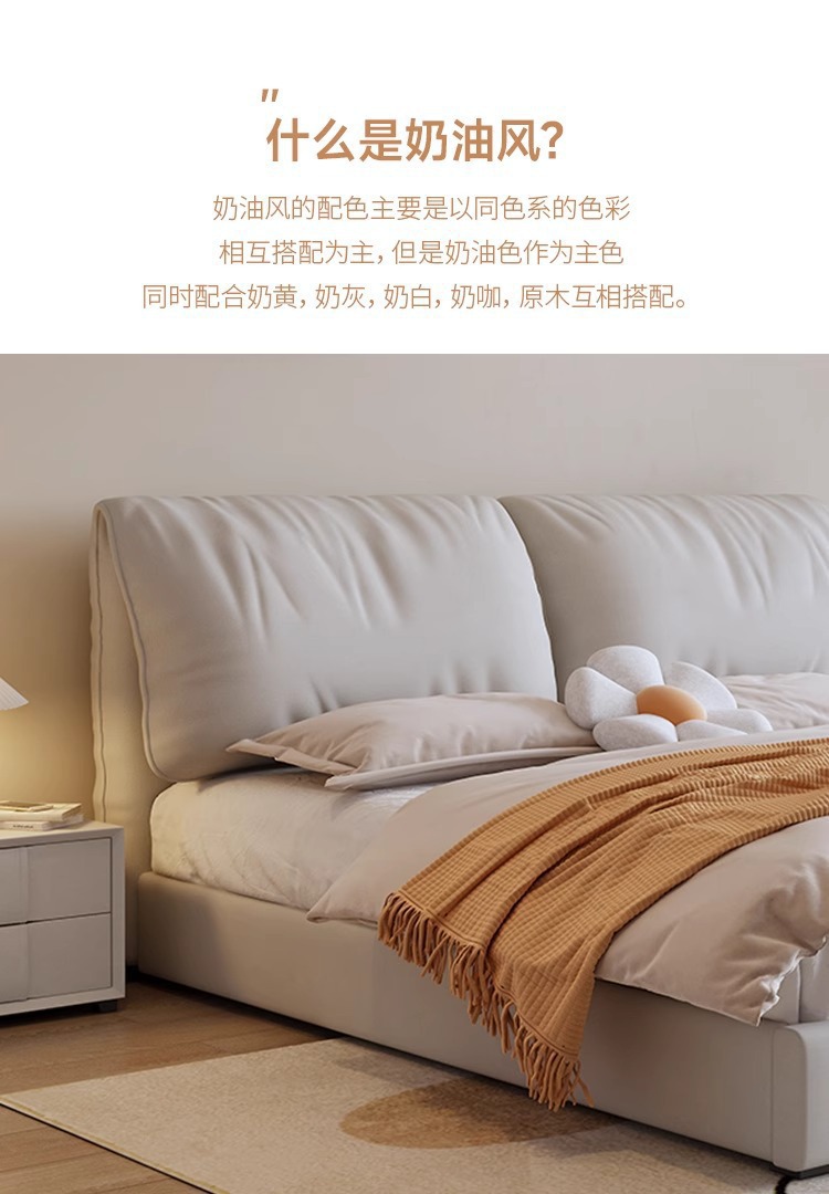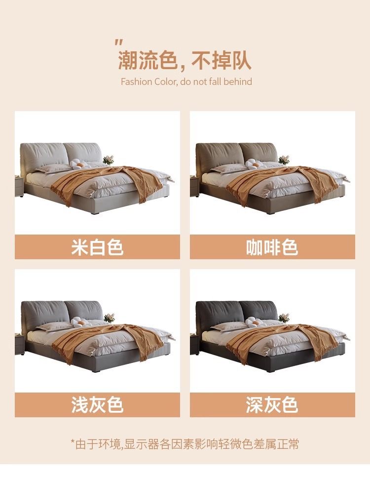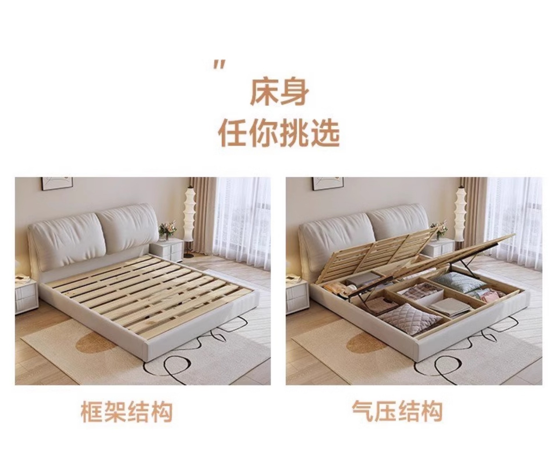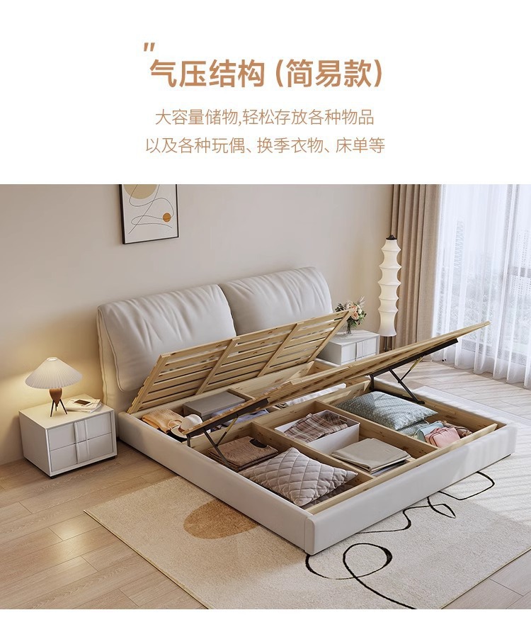 현대 간단한 기술 천 코끼리 귀 침대 크림 스타일 작은 아파트 마스터 침실 1.8m 스토리지 더블 패브릭 웨딩 침대