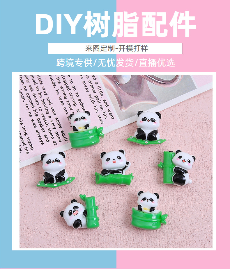 미니 대나무 팬더 만화 수제 DIY 보석 액세서리 크림 접착제 수지 작은 액세서리 헤어핀 소재 가방스토어 가기