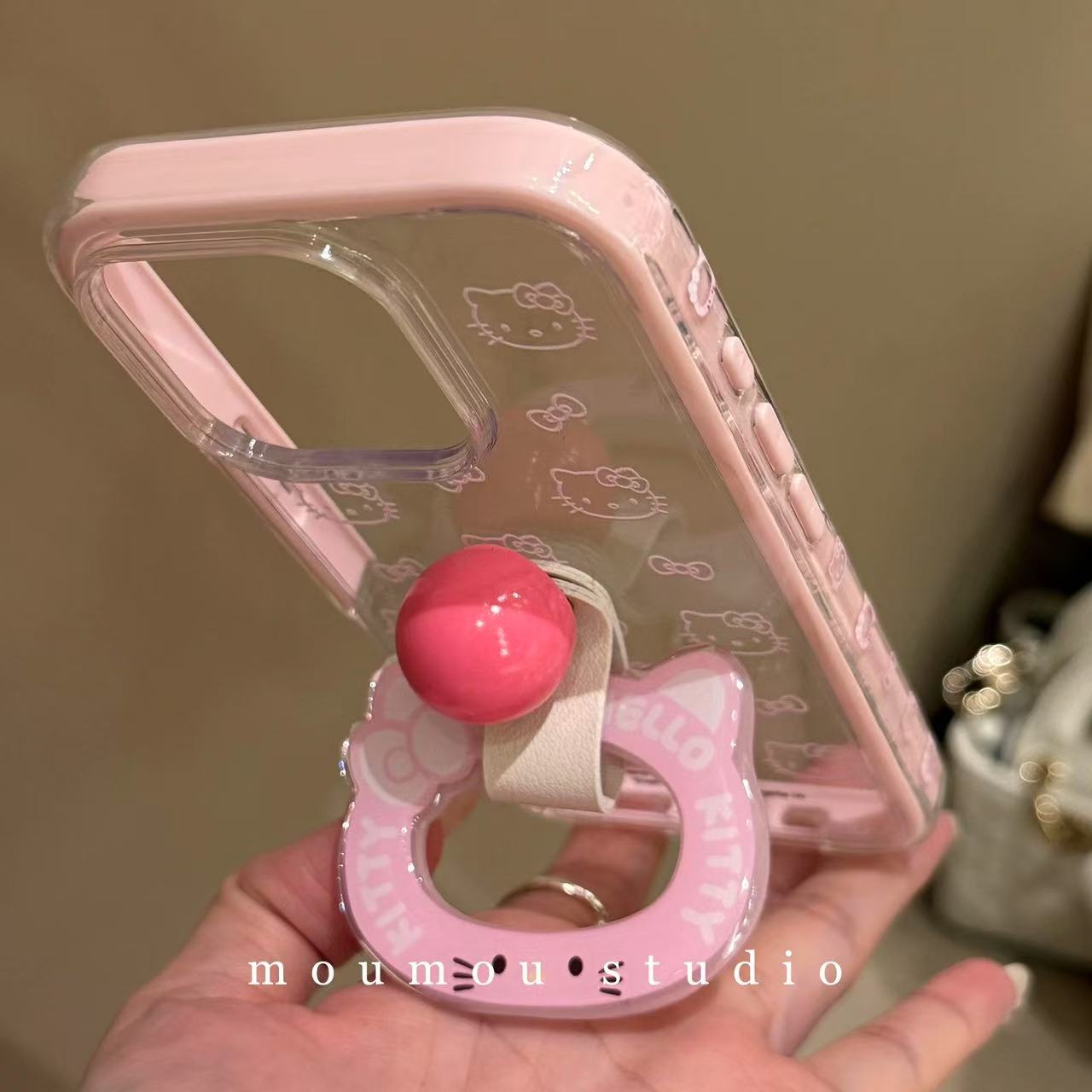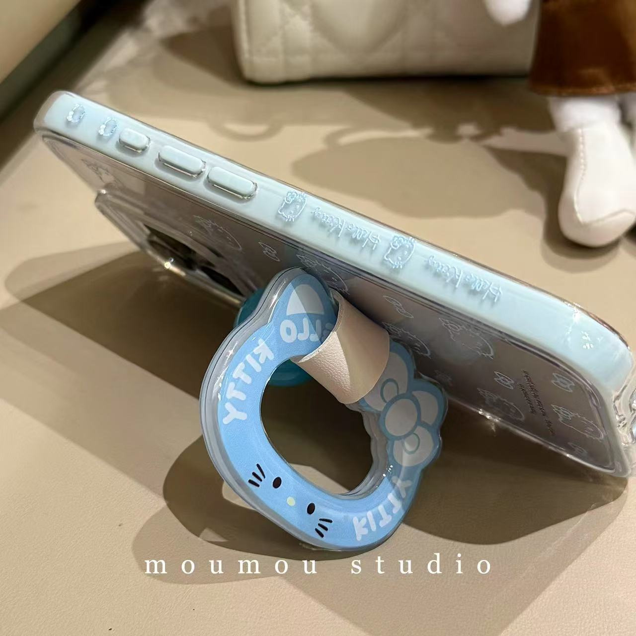 IPhone16promax 애플 15 휴대 전화 케이스 14 새로운 13 에 대한 귀여운 투명 라인 고양이 링 버클스토어 가기